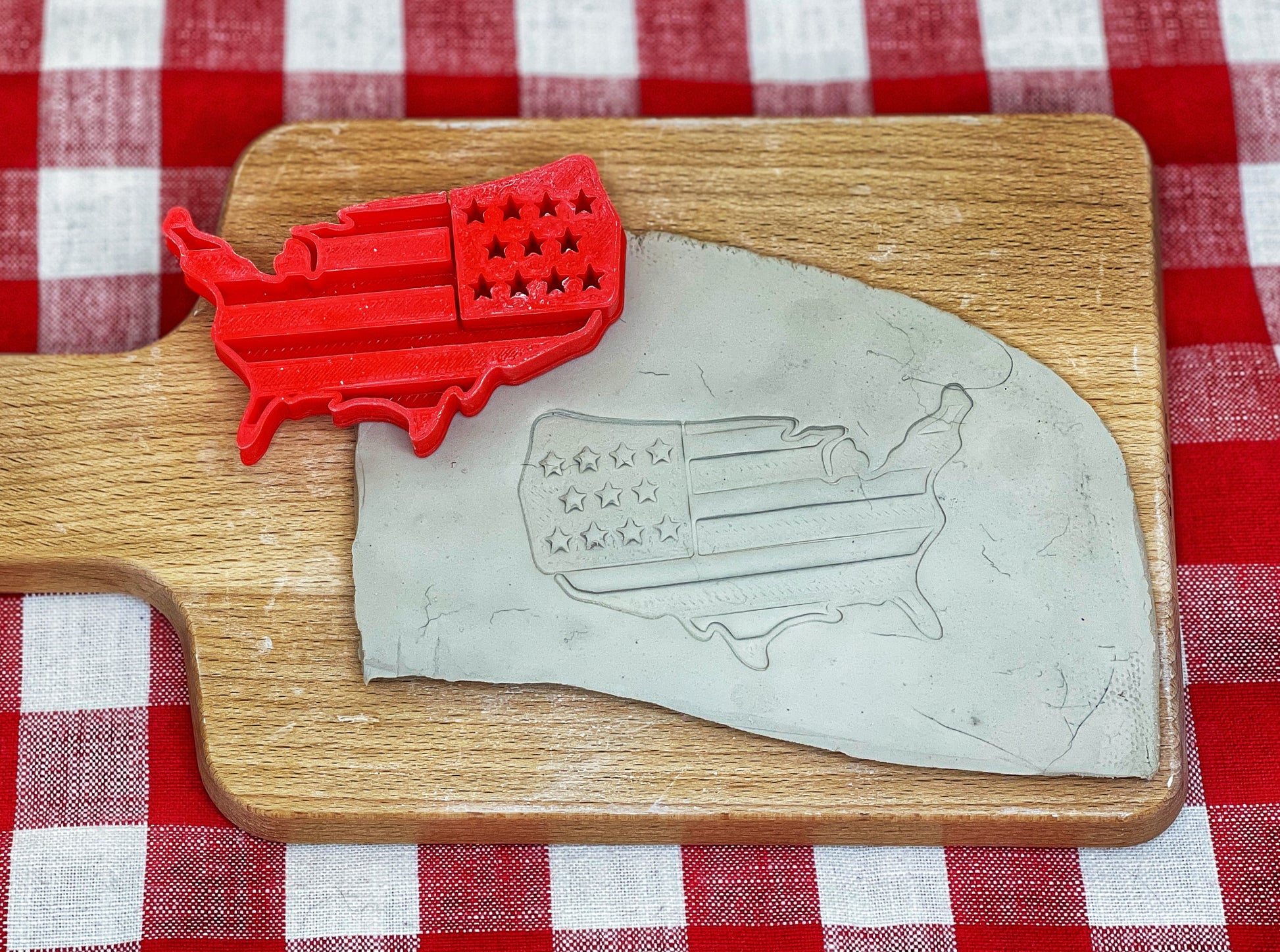 America outline Stars and Stripes Pottery Stamp - plastic 3D printed, multiple sizes
