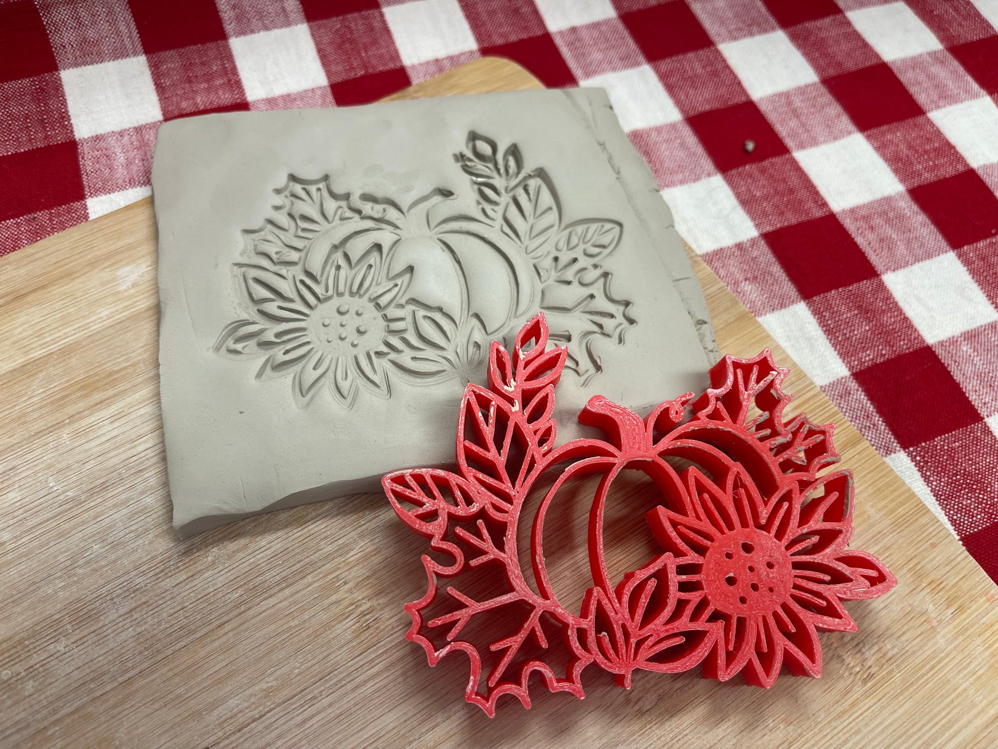 Autumn Stamp Series - Autumn Pumpkin with Sunflower stamp, plastic 3D printed, multiple sizes