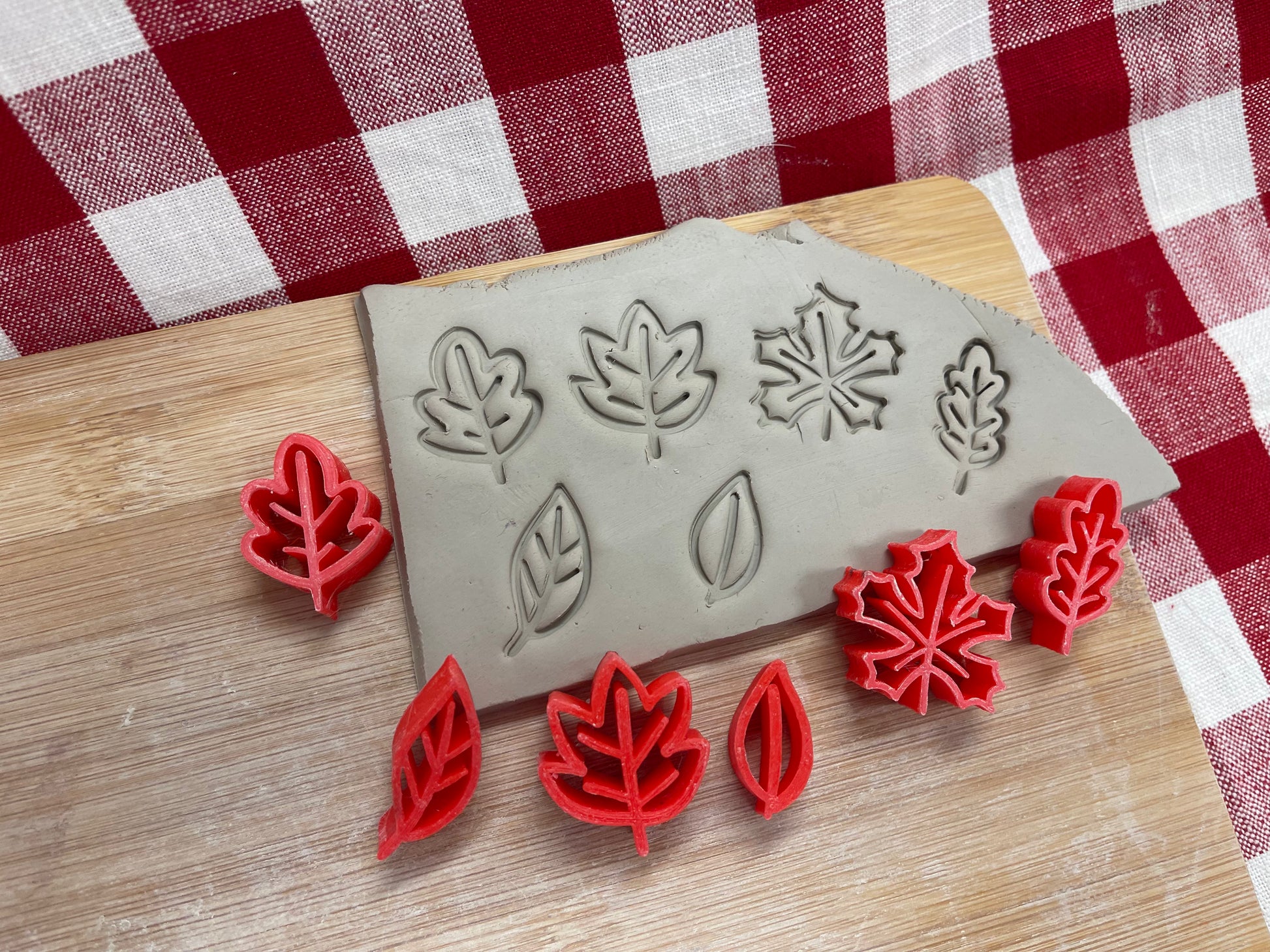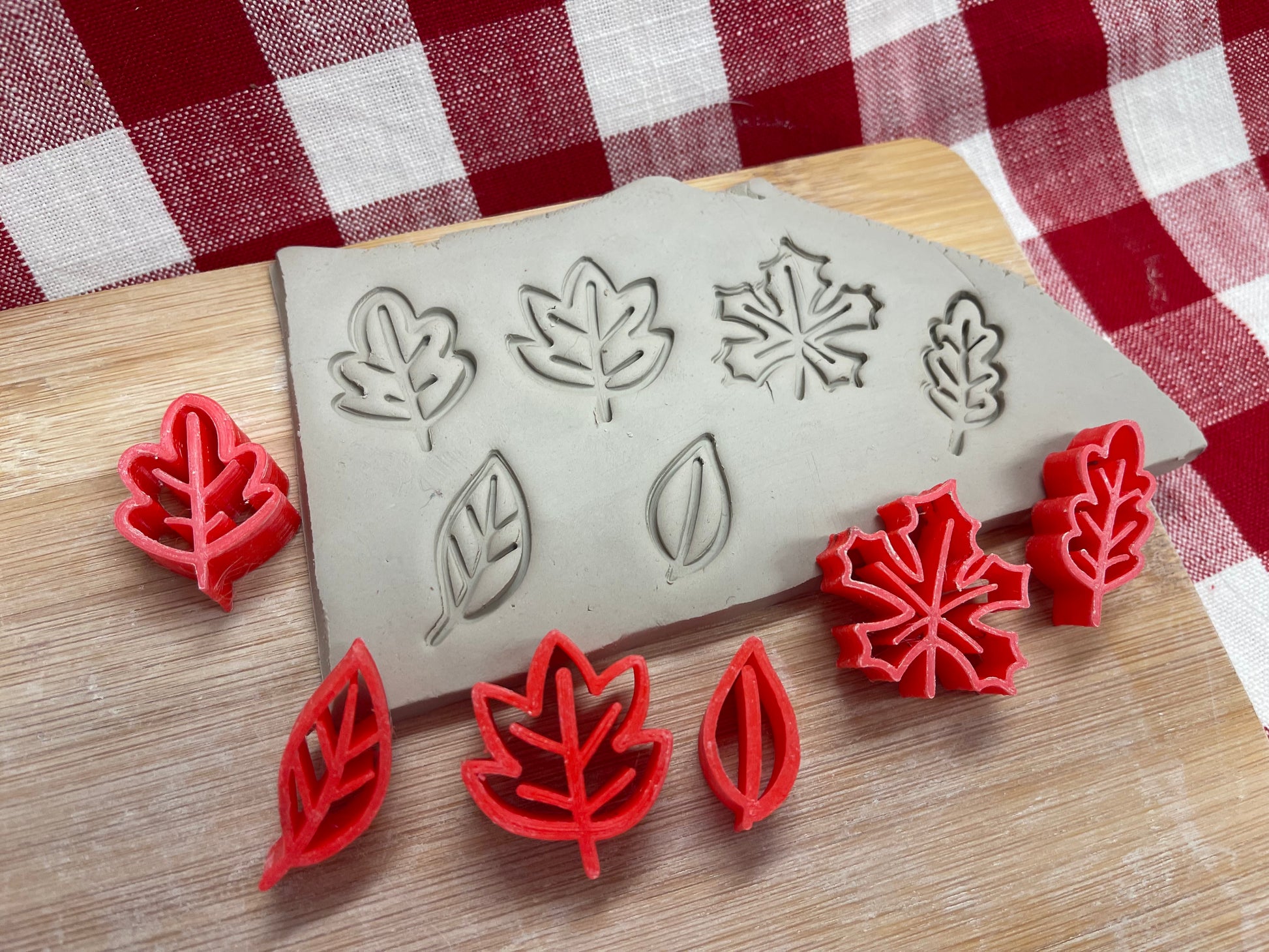 Autumn Elements Stamp Series - Mini Leaves design set of 6, plastic 3D printed, Pottery Tool