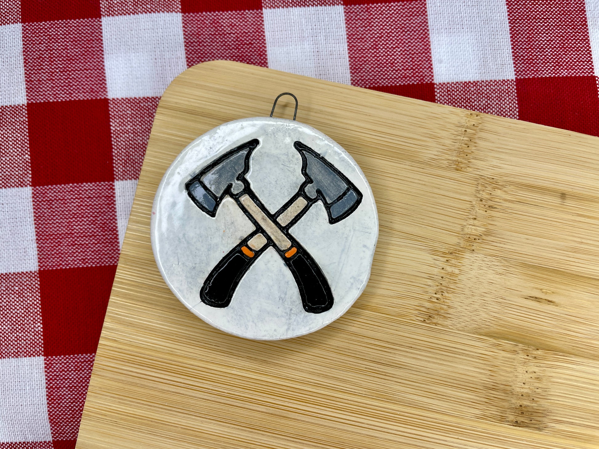 Firefighter Axes Pottery Stamp - First Responders themed November 2024 Mystery Box, multiple sizes available