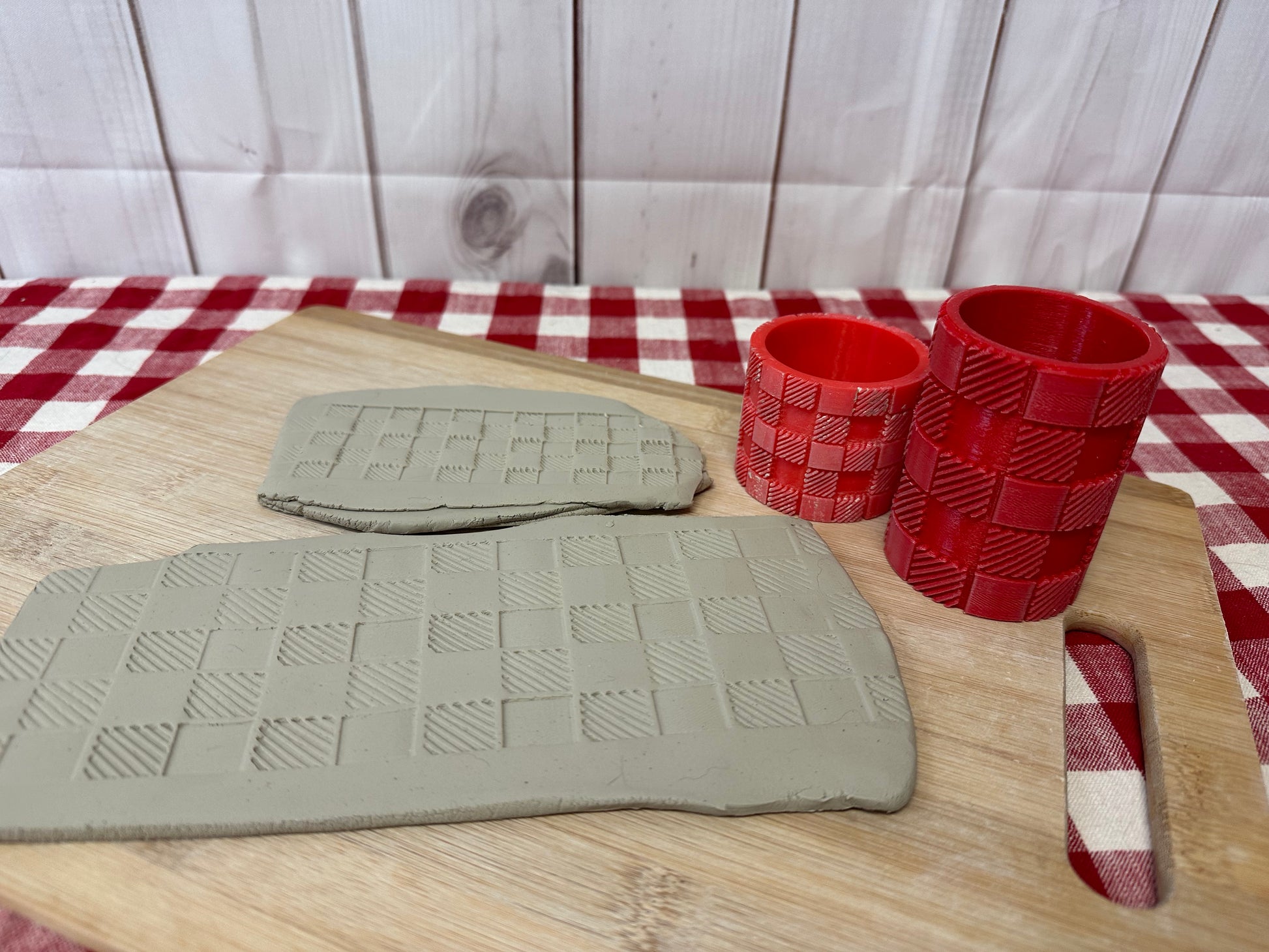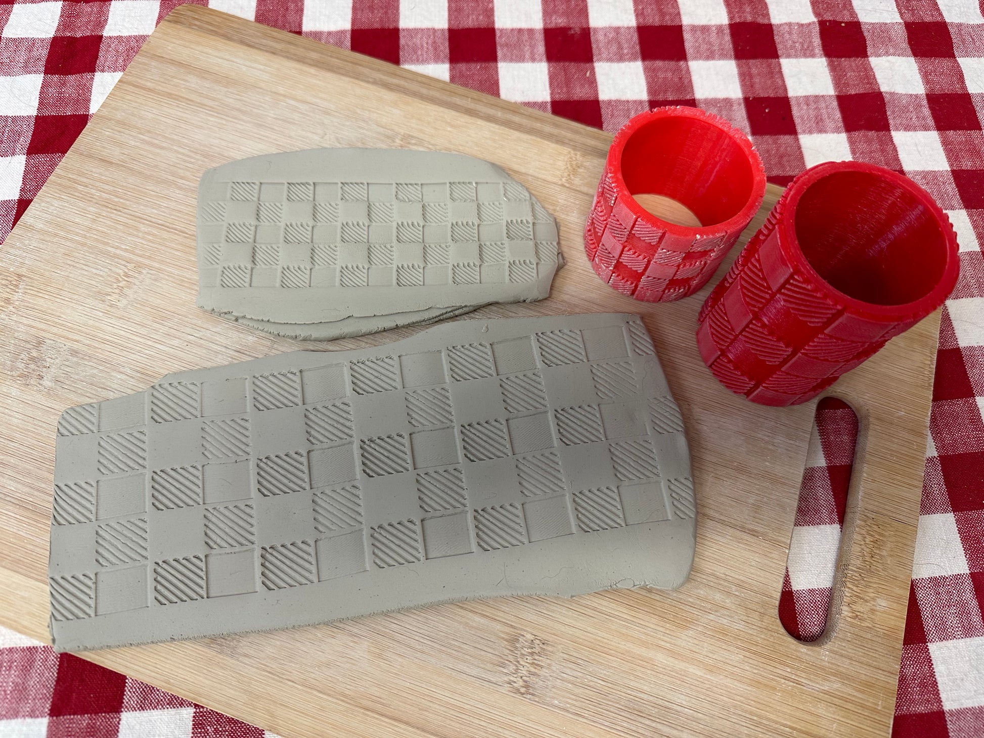 Buffalo Plaid/Gingham Check Pottery Roller - Now in 2 sizes! Border Stamp, Repeating pattern, Plastic 3d printed