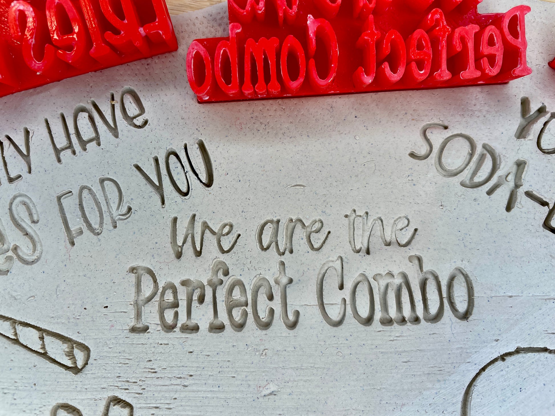 Burger, Fries, Soda, Ice Cream Fast Food Roller, "We are the Perfect Combo", "You Are Soda-Lightful" and "I Only Have Fries For You" Word Stamps, Each or Set - December 2024 Valentines - Punny Food themed Mystery Box, multiple sizes available