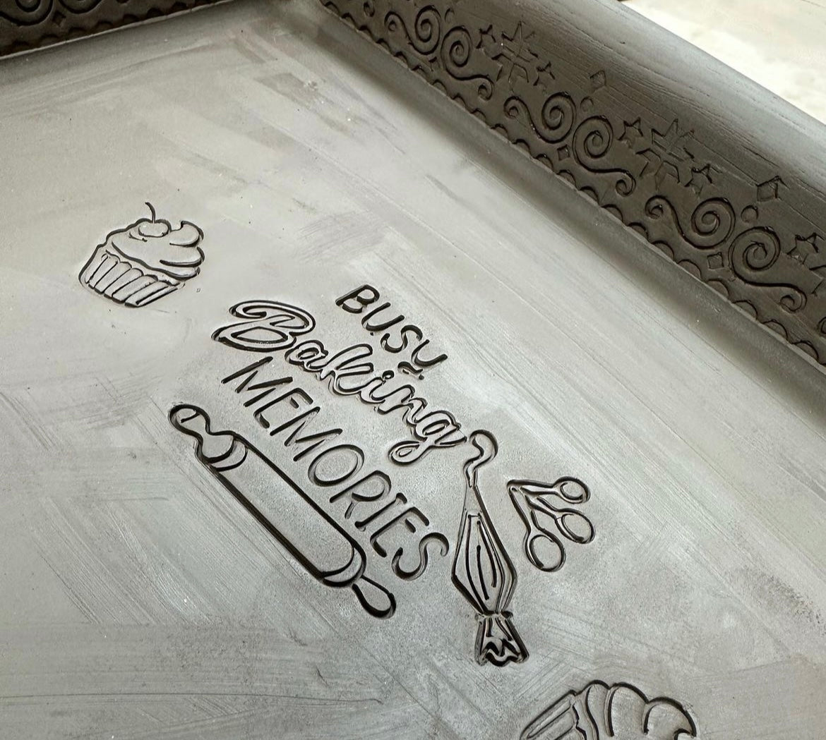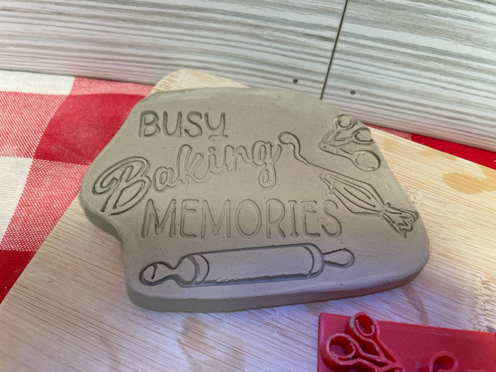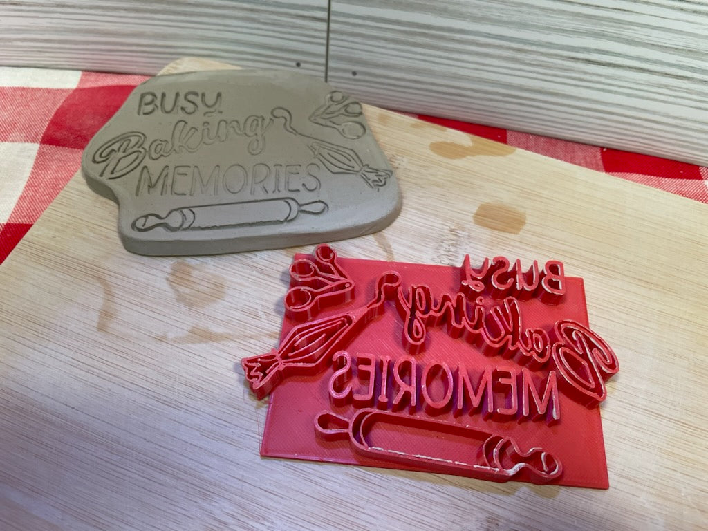 "Busy Baking Memories" word stamp - December 2023 mystery box, plastic 3d printed, multiple sizes available