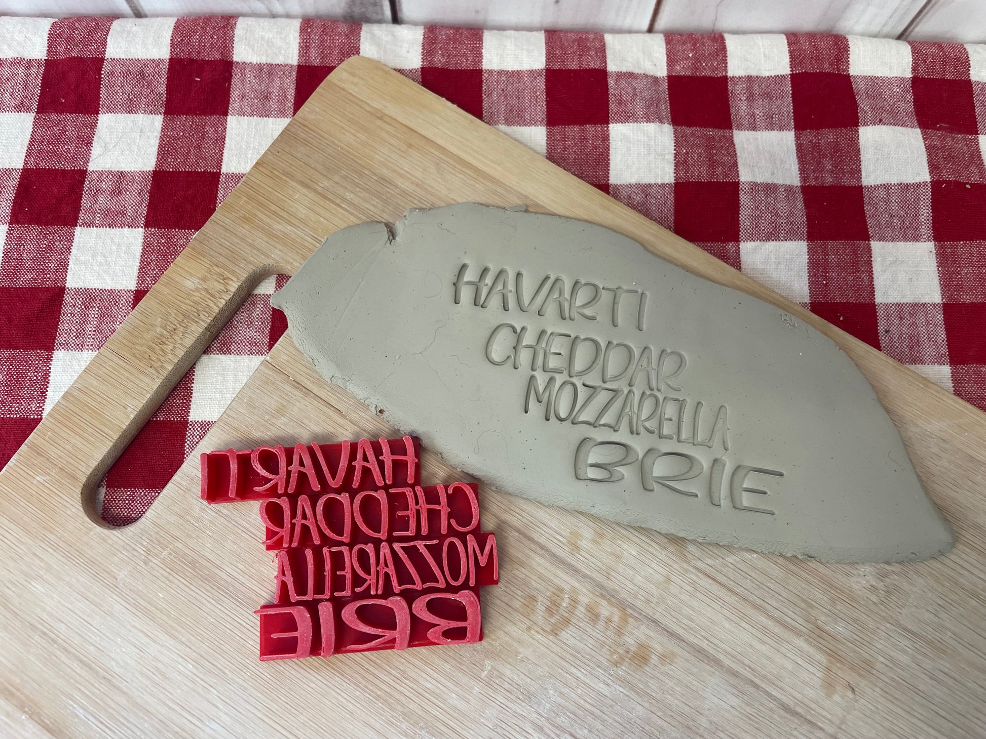 Cheese Stake Words Pottery Stamps - Brie, Gouda, Cheddar, etc, 3D Printed, each