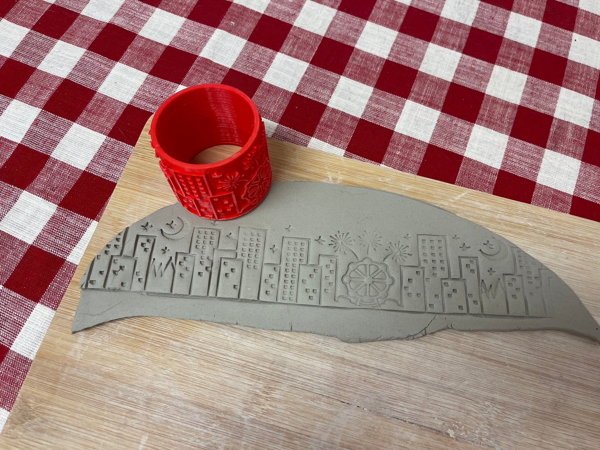 City Scape Texture Roller - from the March 2023 mystery box, repeating pattern, plastic 3D printed