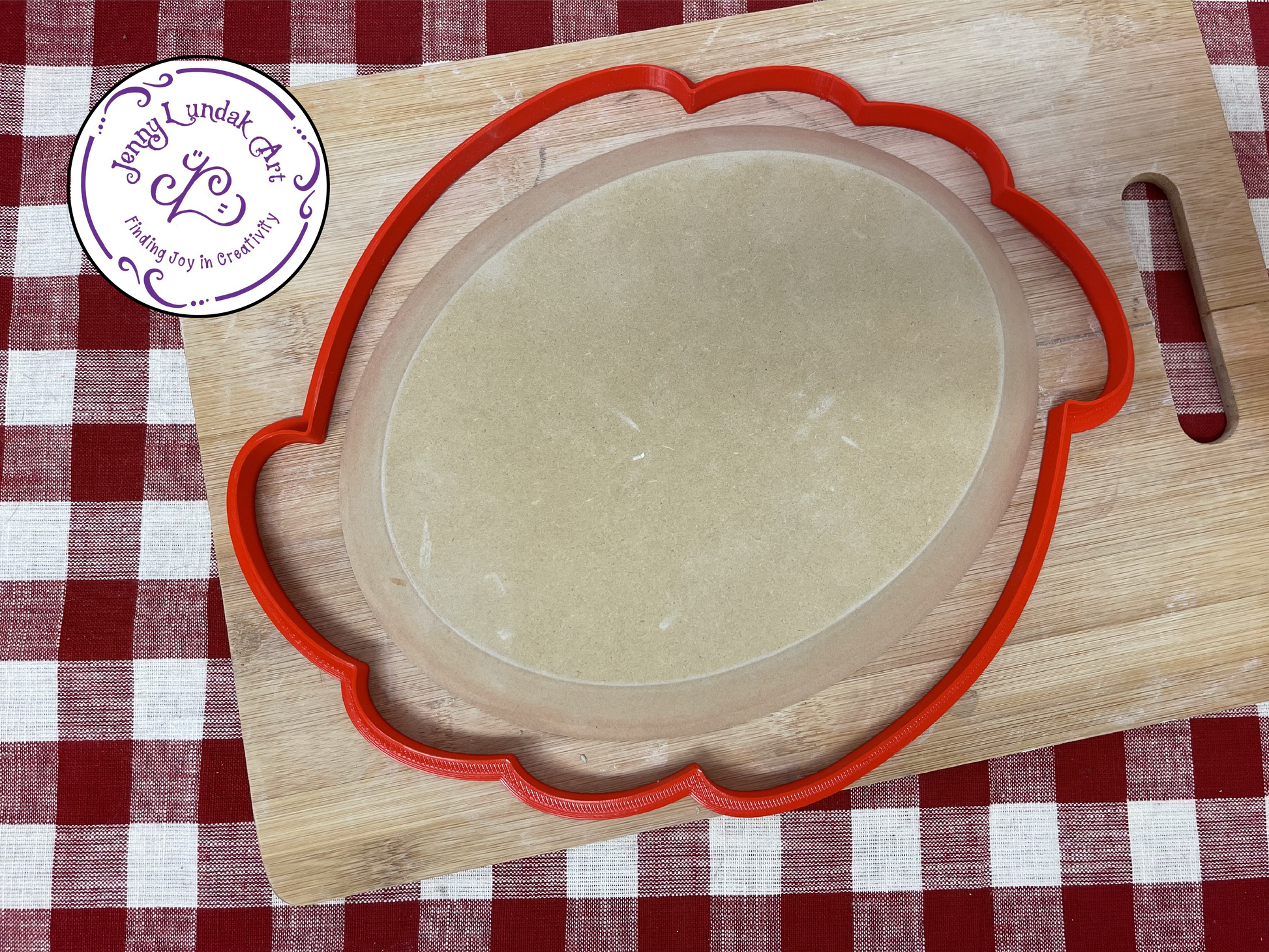 Wave oval tray cookie cutter available in multiple sizes. The cutter that was included in the March mystery box was 6 3/4 x 8 1/4. I have since changed the size to 6 3/4 x 8 3/4 but it should not make a noticeable difference. Measurements are taken at the widest interior location. Choose size in drop down menu. For custom sizes not shown, please contact me.