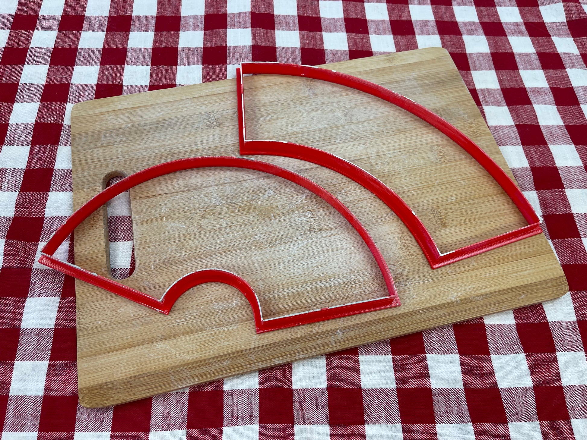 Cookie cutter is 3D printed using PLA plastic filament. Keeps its shape as opposed to metal cookie cutters. Has a wide handle for strength and durability.