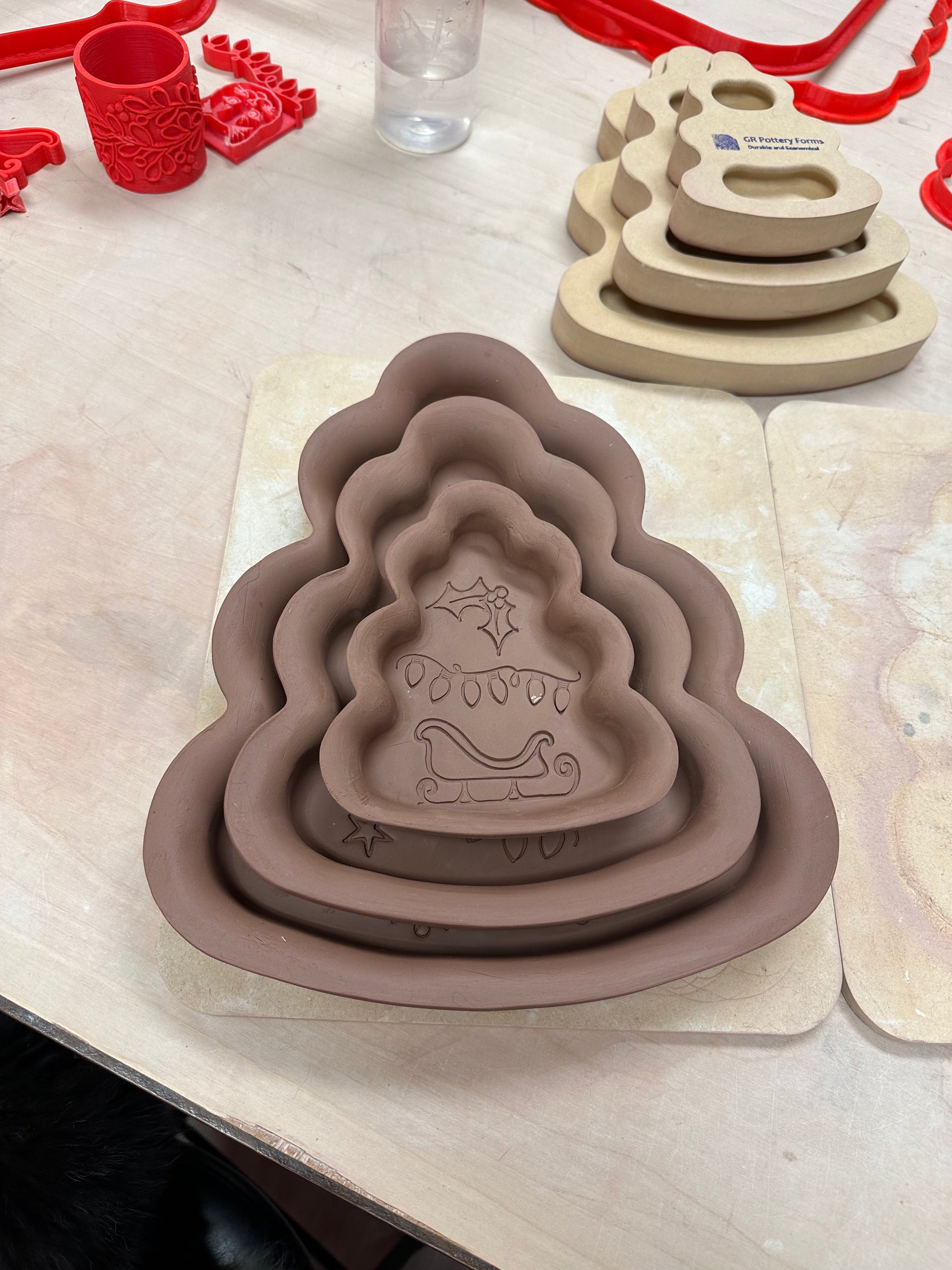 Christmas Tree Candy Dish Clay Cutter - plastic 3D printed, pottery tool, multiple sizes