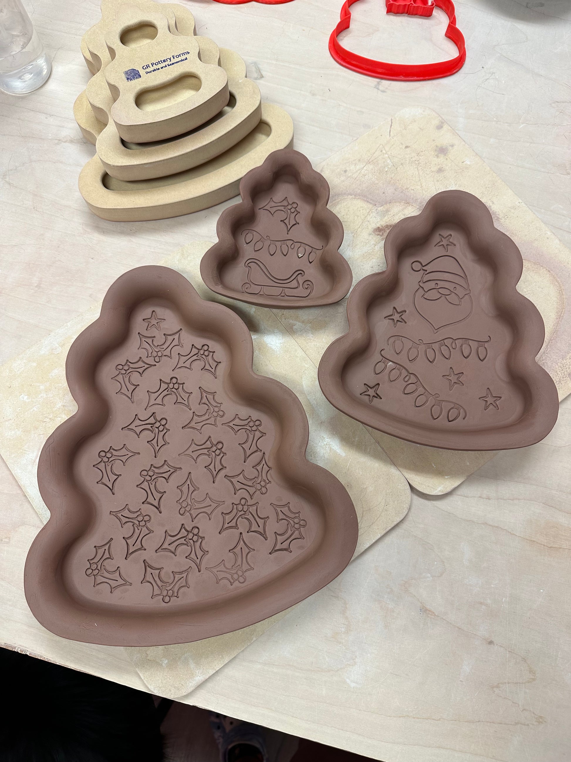 Christmas tree shaped cookie cutter matches GR Pottery forms Tree shaped candy dish form for making pottery. { Form NOT included}. Measurements are taken at the widest interior location. Cutter measures 9 1/2" x 11 1/2" and gives a nice rim to the 8" x 10" form. Forms not included. Other sizes were created upon request and don't have a form to use with it.