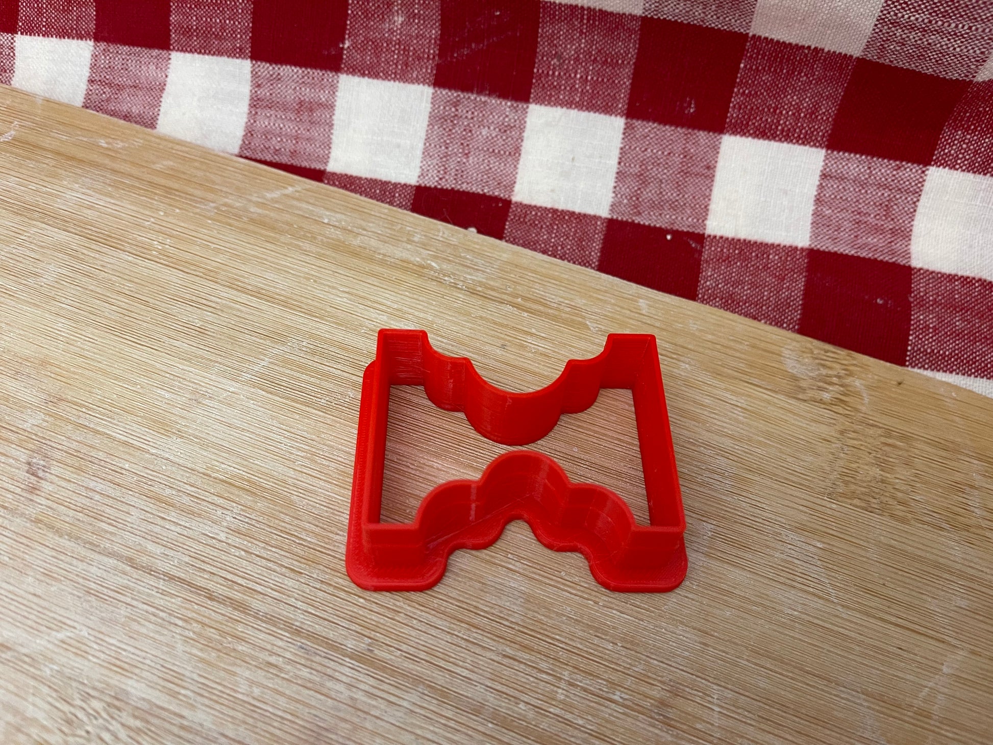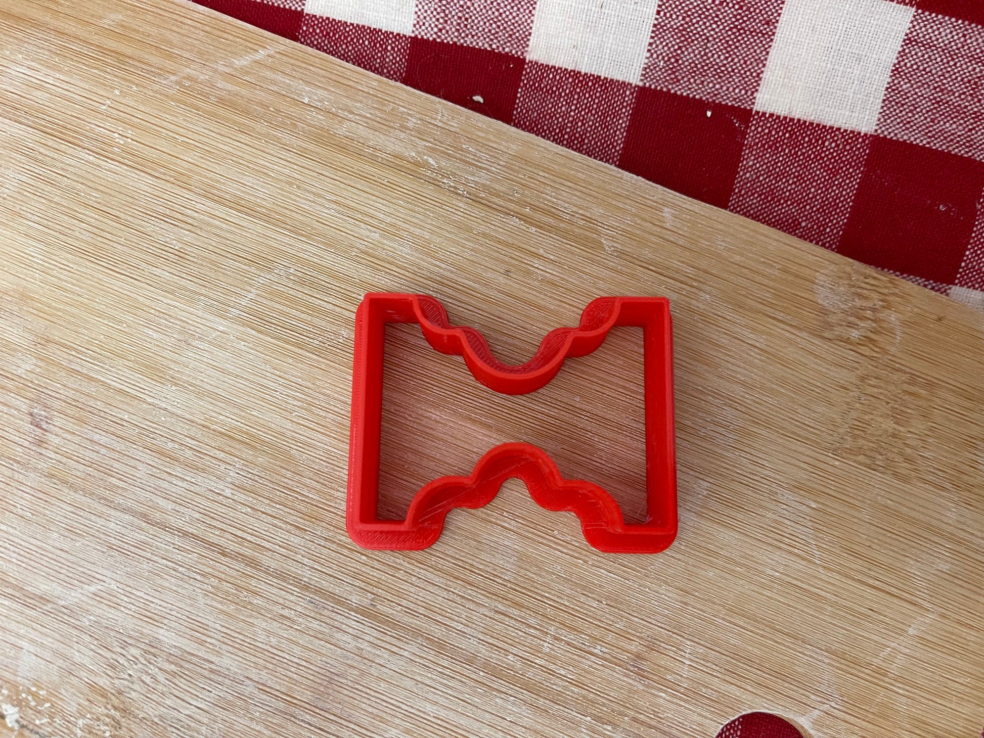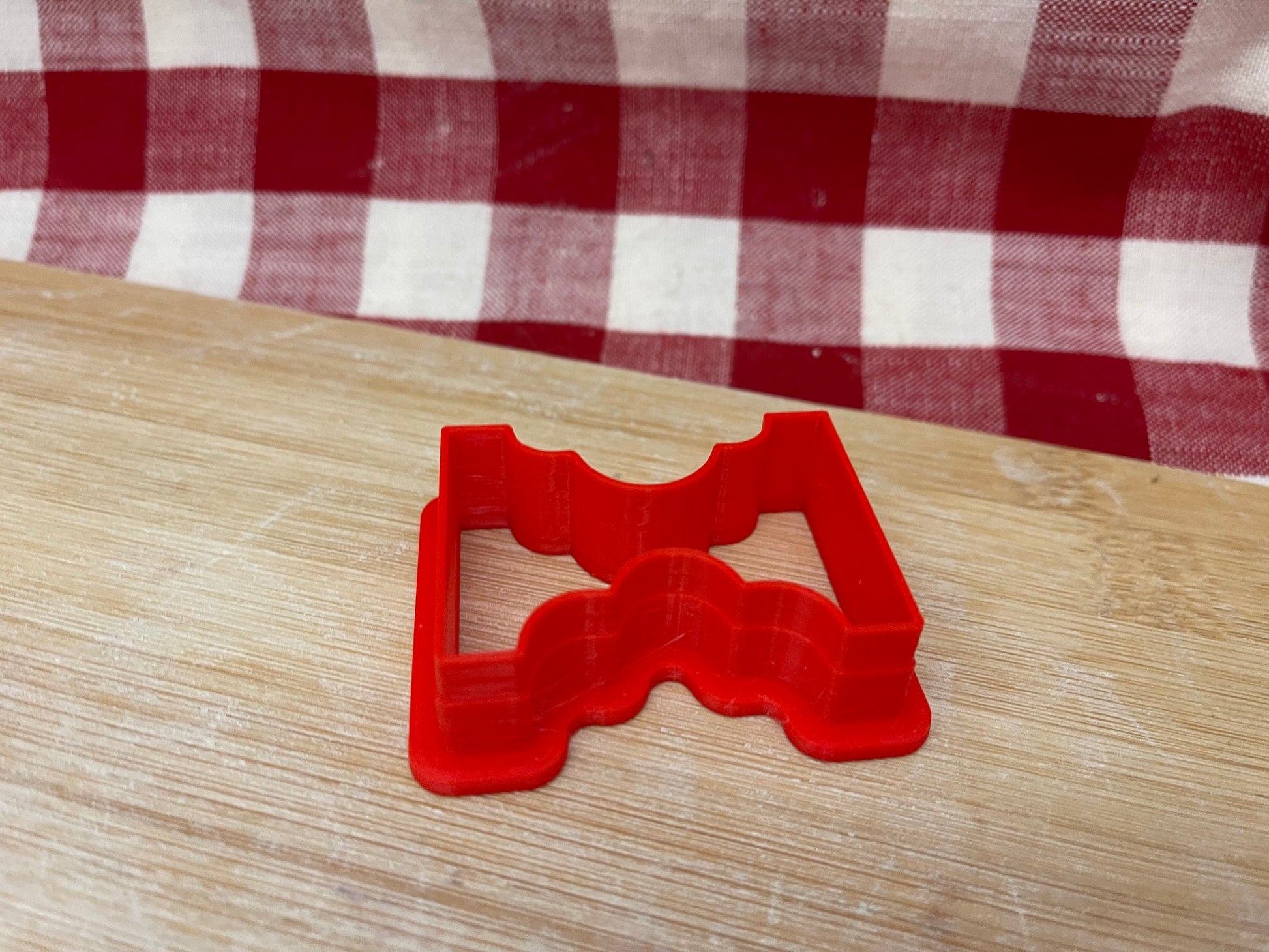Cookie cutter is 3D printed using PLA plastic filament. Keeps its shape as opposed to metal cookie cutters. Has a wide handle for strength and durability.