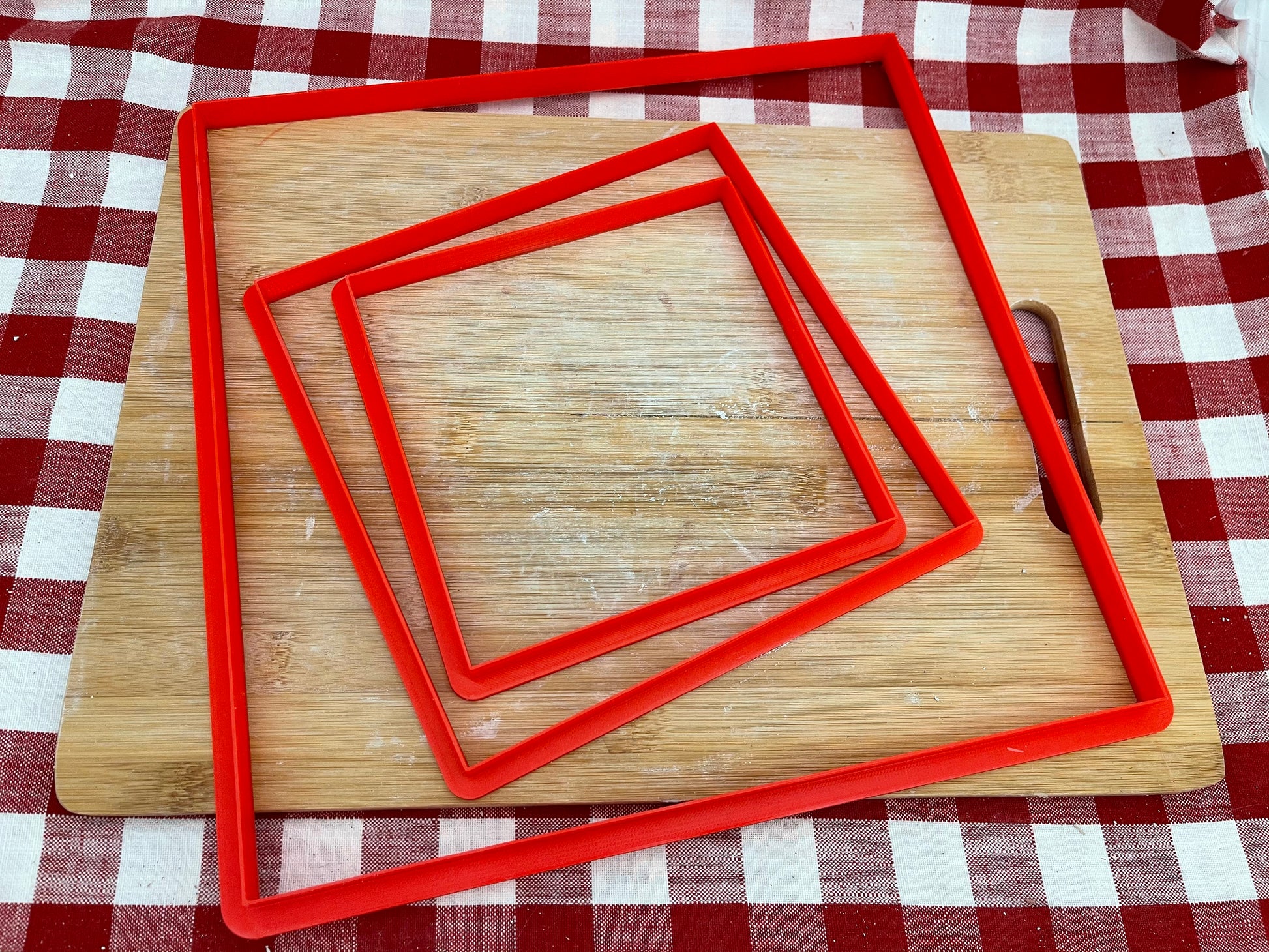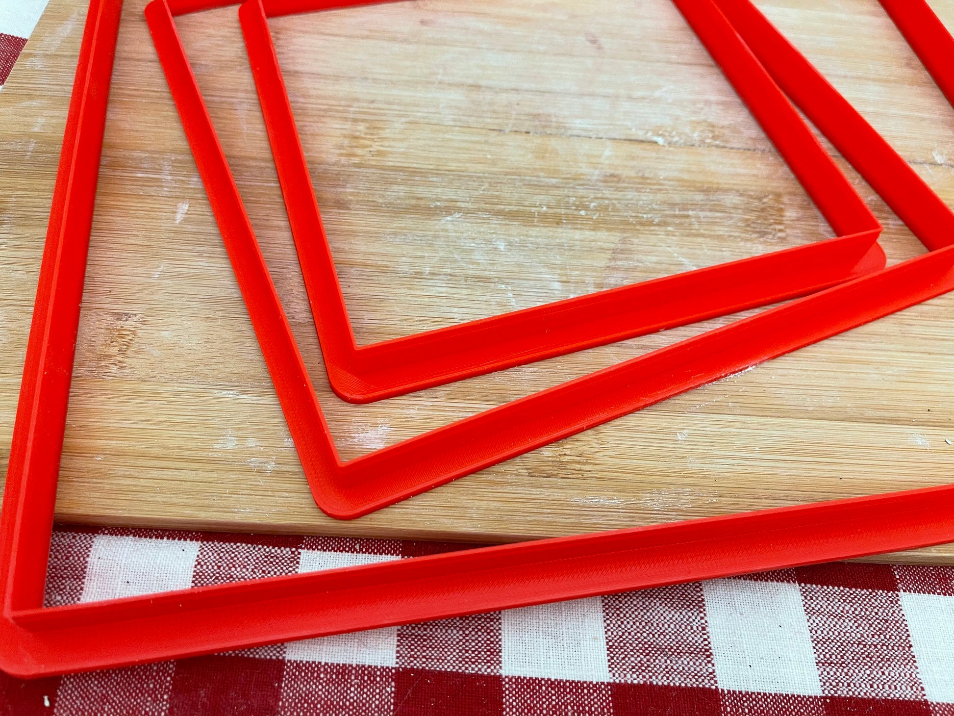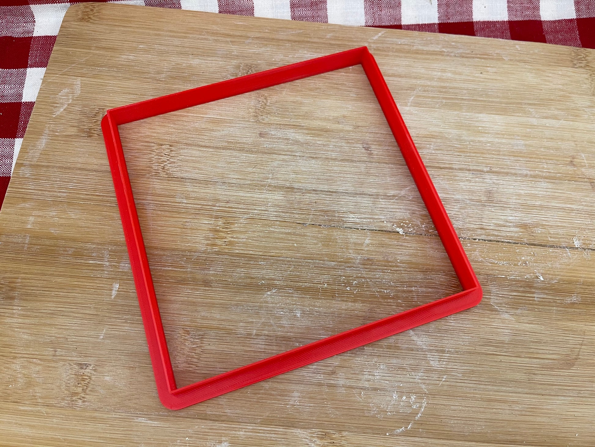 Plain Square cookie cutter available in any size 1" to 16" diameter. Has straight sides with sharp corners. Choose size in drop down menu. For custom sizes not shown, please contact me.