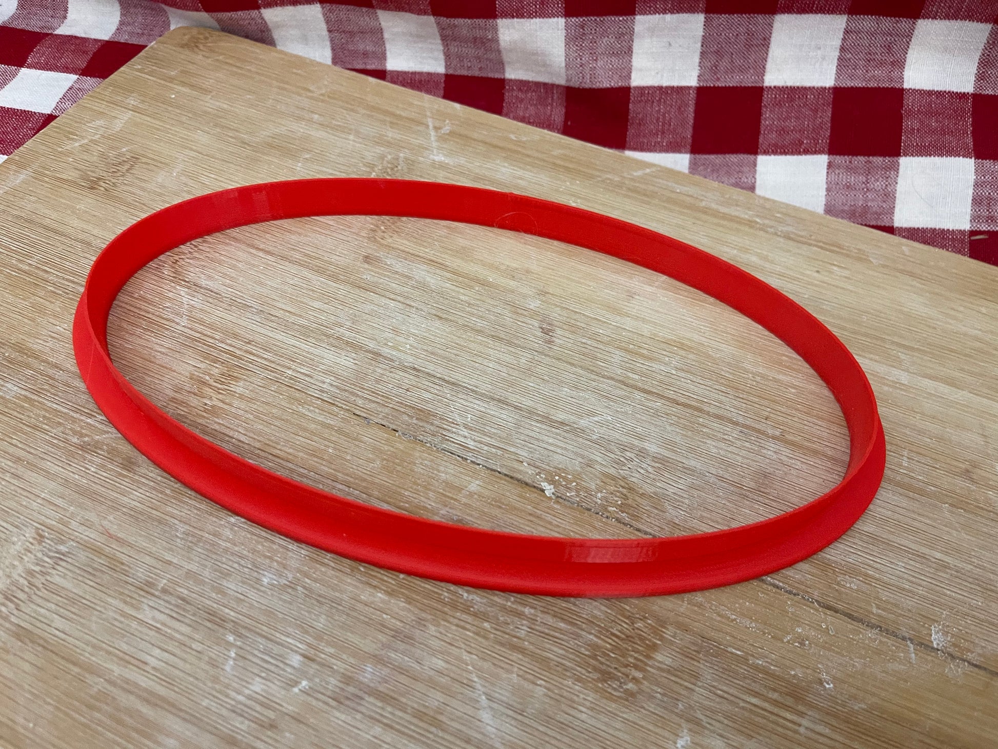 Oval cookie cutter available in multiple sizes. Measurements are taken at the widest interior location. Choose size in drop down menu. For custom sizes not shown, please contact me.
