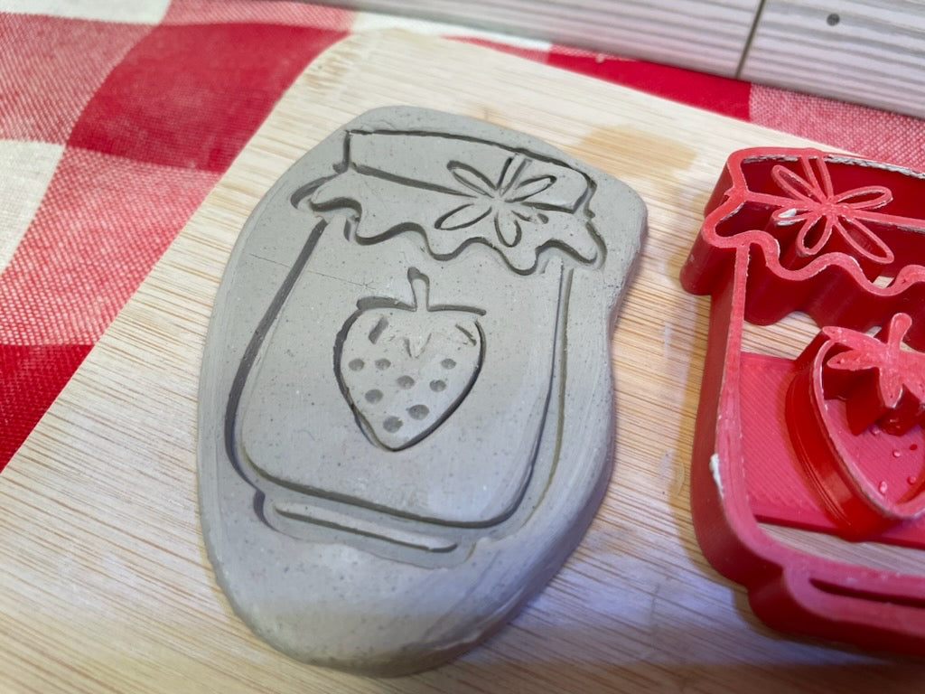 Strawberry Jam Jelly Jar Pottery Stamp - December 2023 Mystery Box, Plastic 3D printed, multiple sizes available