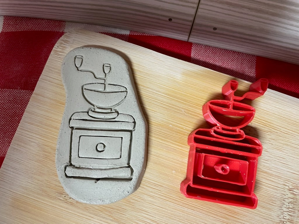 Coffee Grinder Pottery Stamp - December 2023 Mystery Box, Plastic 3D printed, multiple sizes available