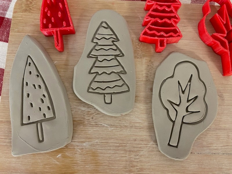 Pottery Stamps Set of 3 Winter Trees - September 2023 Mystery Box, plastic 3D printed