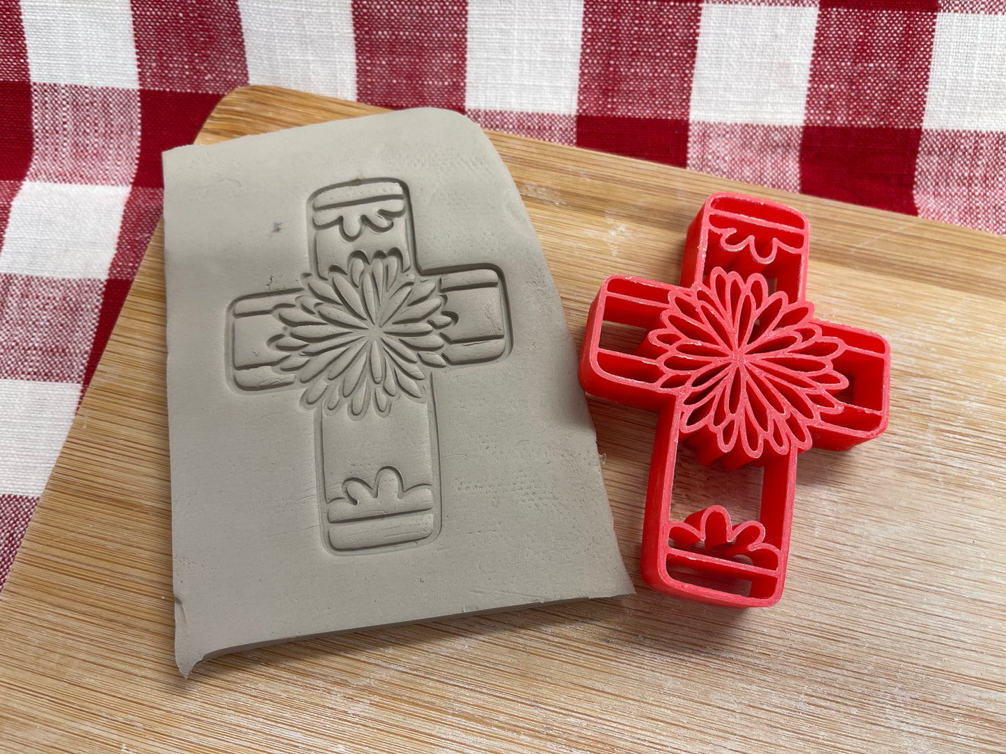 Cross Pottery Stamp, Day of the Dead Series - plastic 3D printed, pottery tool, multiple sizes