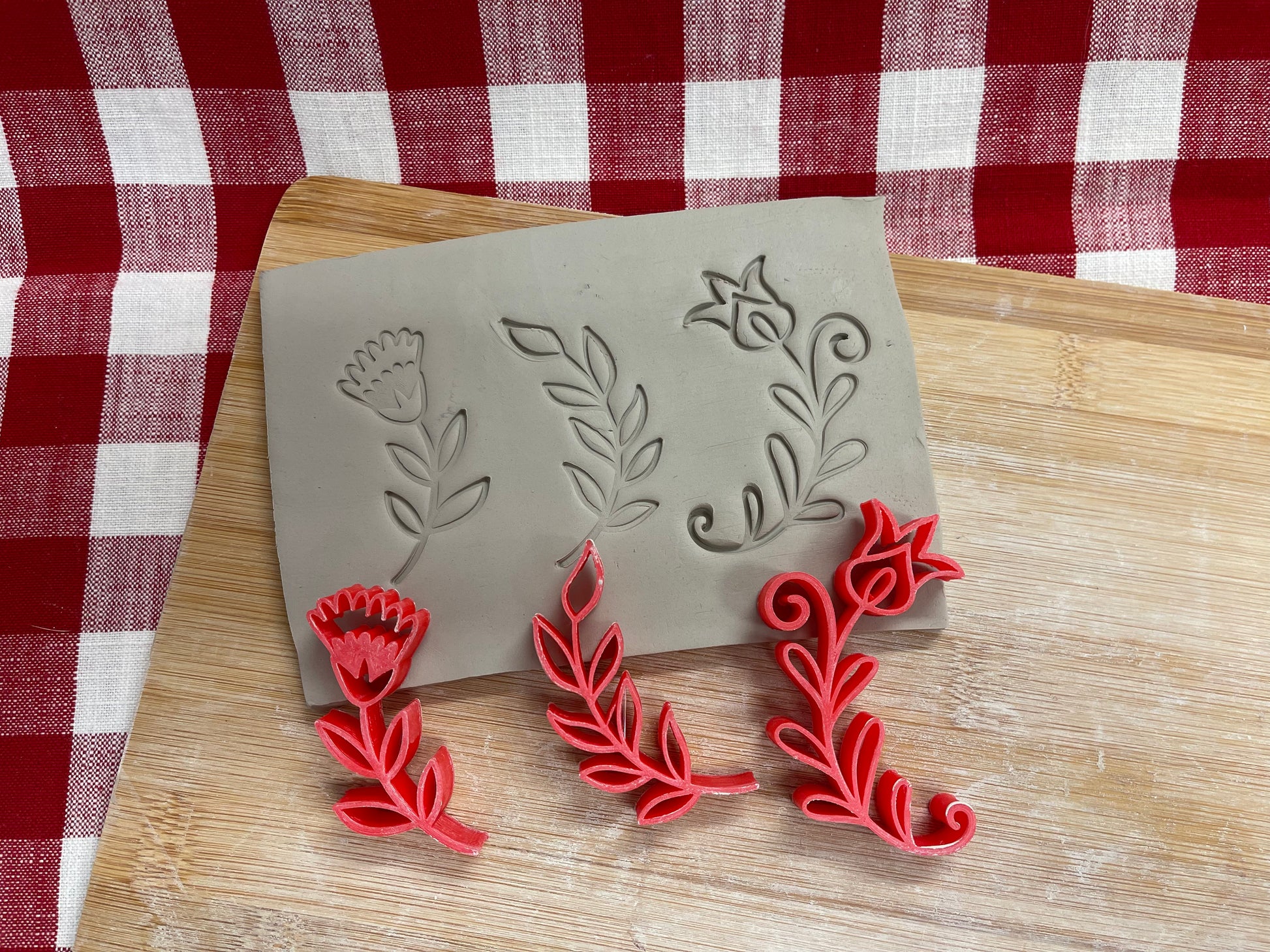 Laurel Branch stamp, Day of the Dead series, Set of 3 - plastic 3D printed, pottery tool