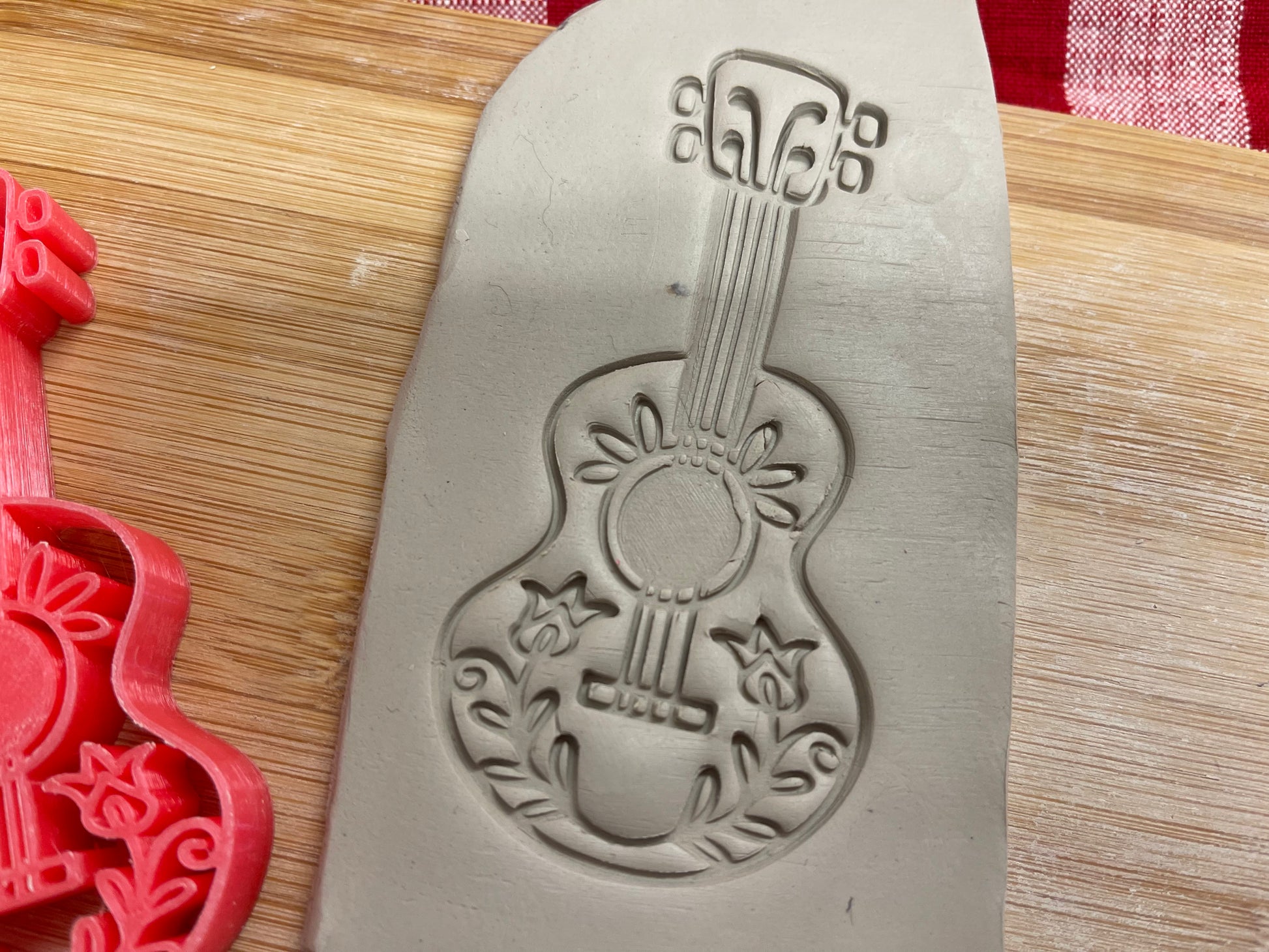 Guitar Stamp, Day of the Dead Series - plastic 3D printed, pottery tool
