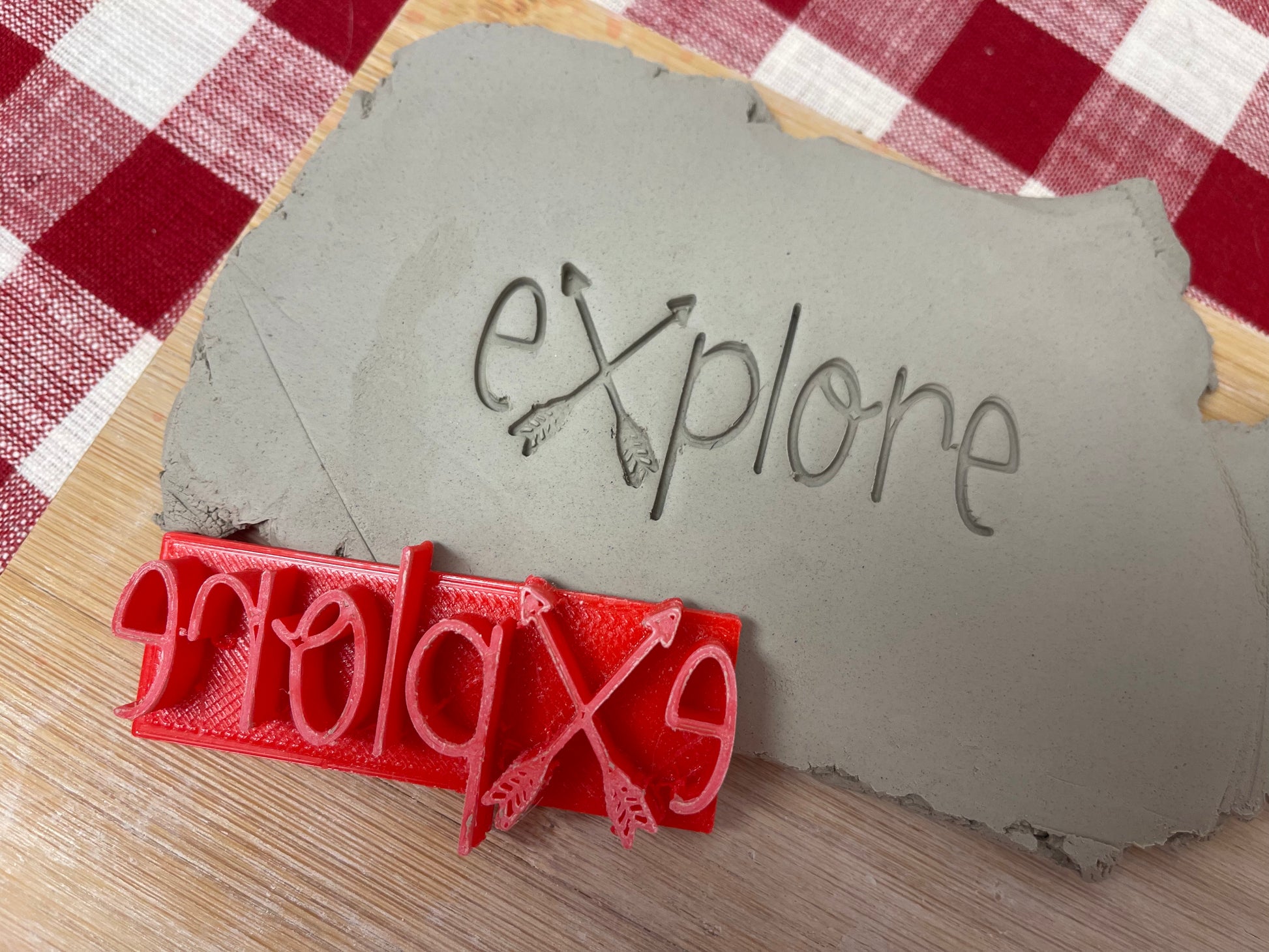 "Explore" word stamp - March 2023 mystery box, plastic 3D printed, multiple sizes available