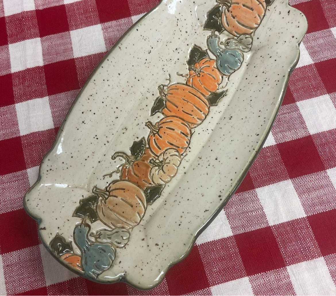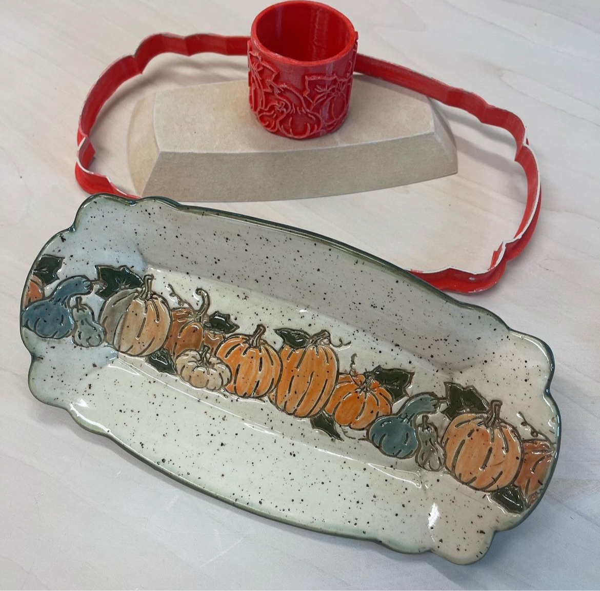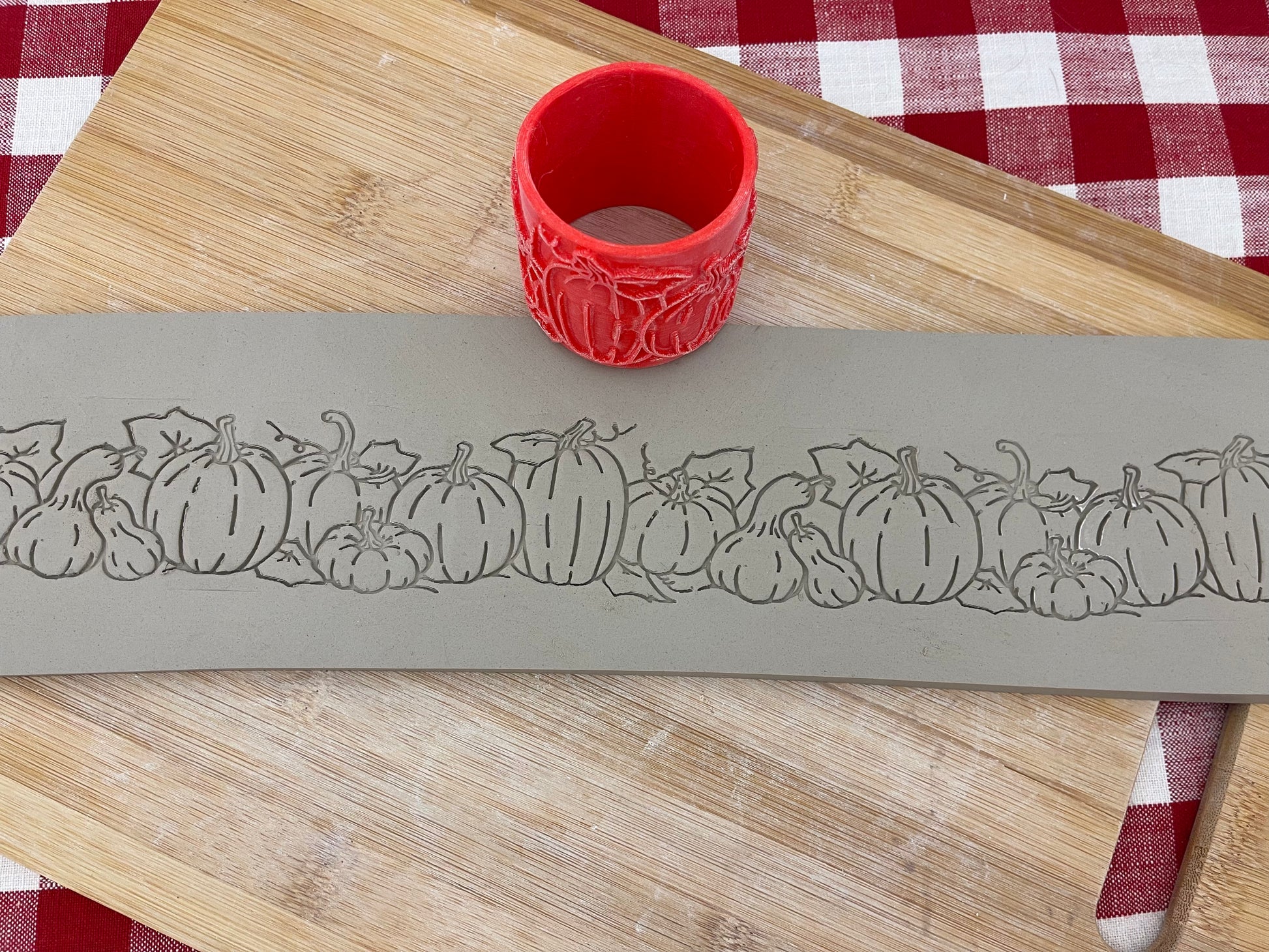 Fall Pumpkins w/leaves Pottery Roller - Border Stamp, Repeating design, Plastic 3d printed