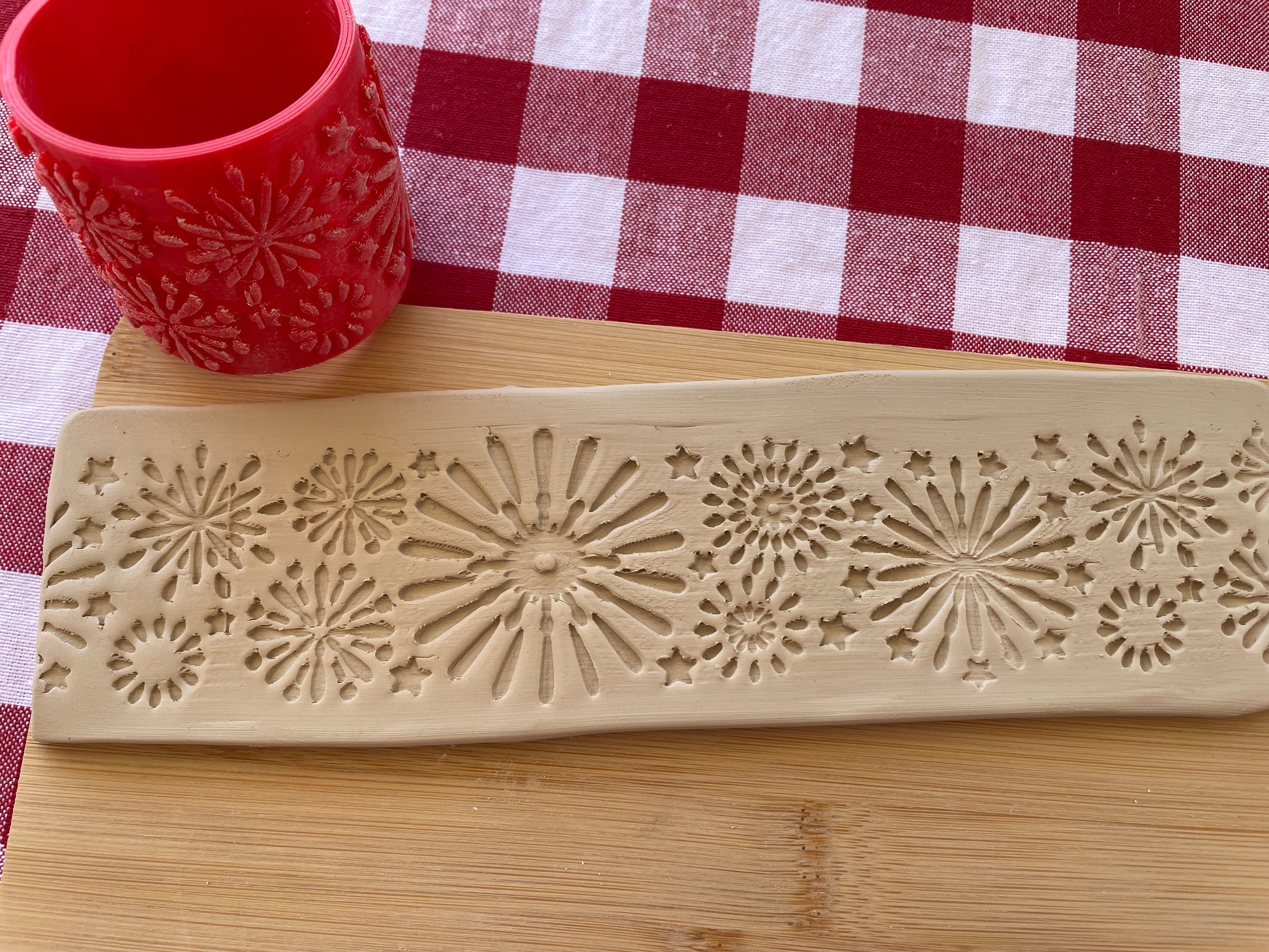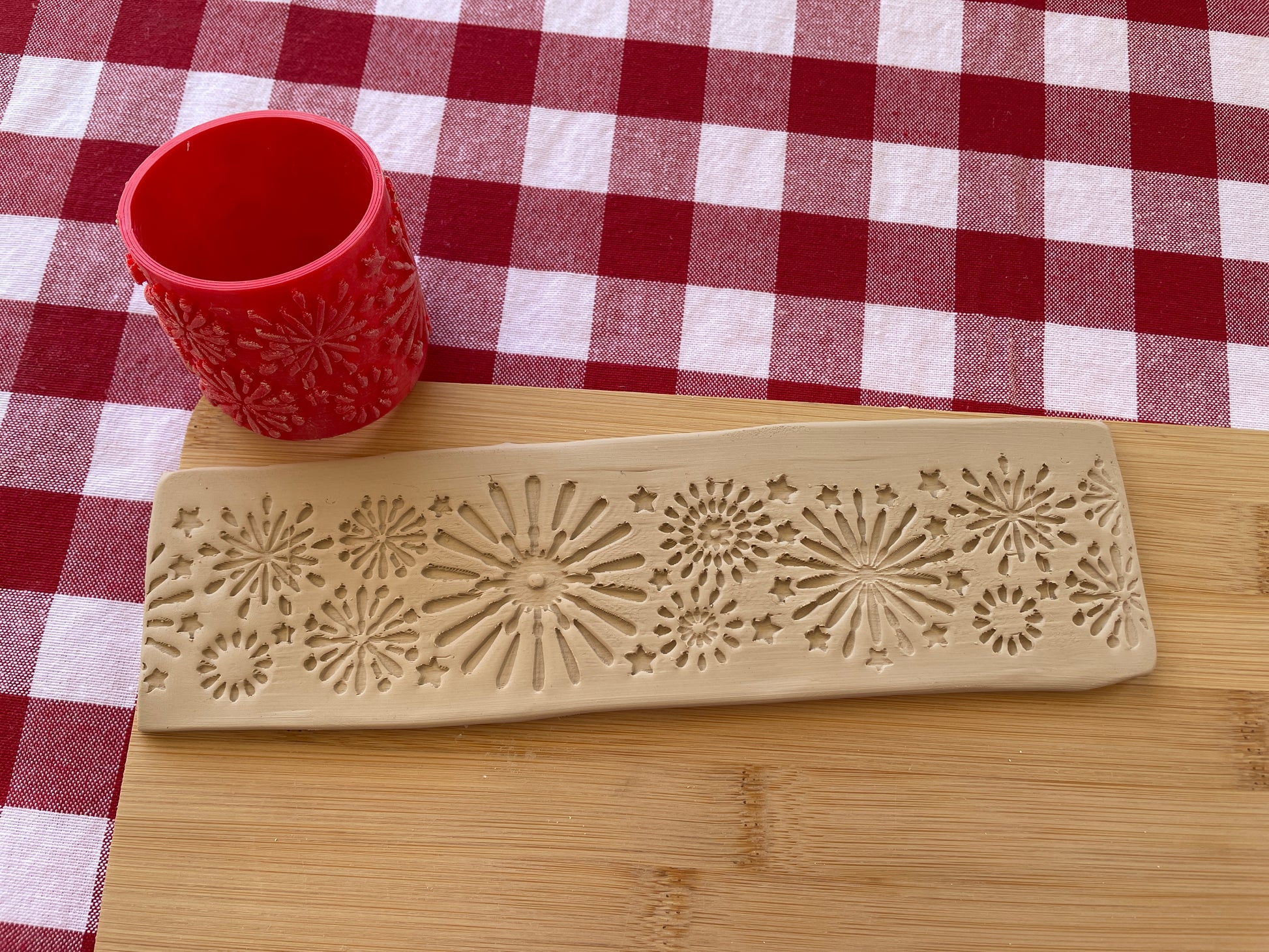 Fireworks Pottery Roller - June 2025 - Circus Themed Mystery Box - Border Design, Repeating pattern, Plastic 3d printed, star burst