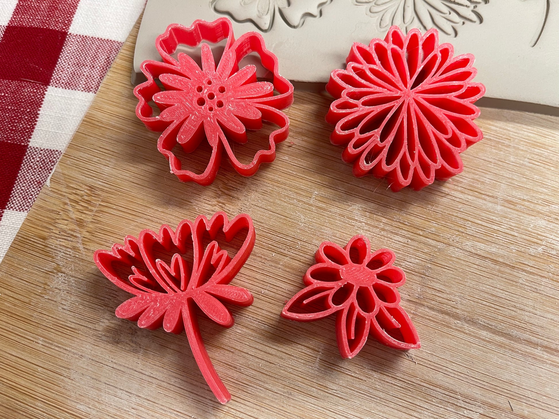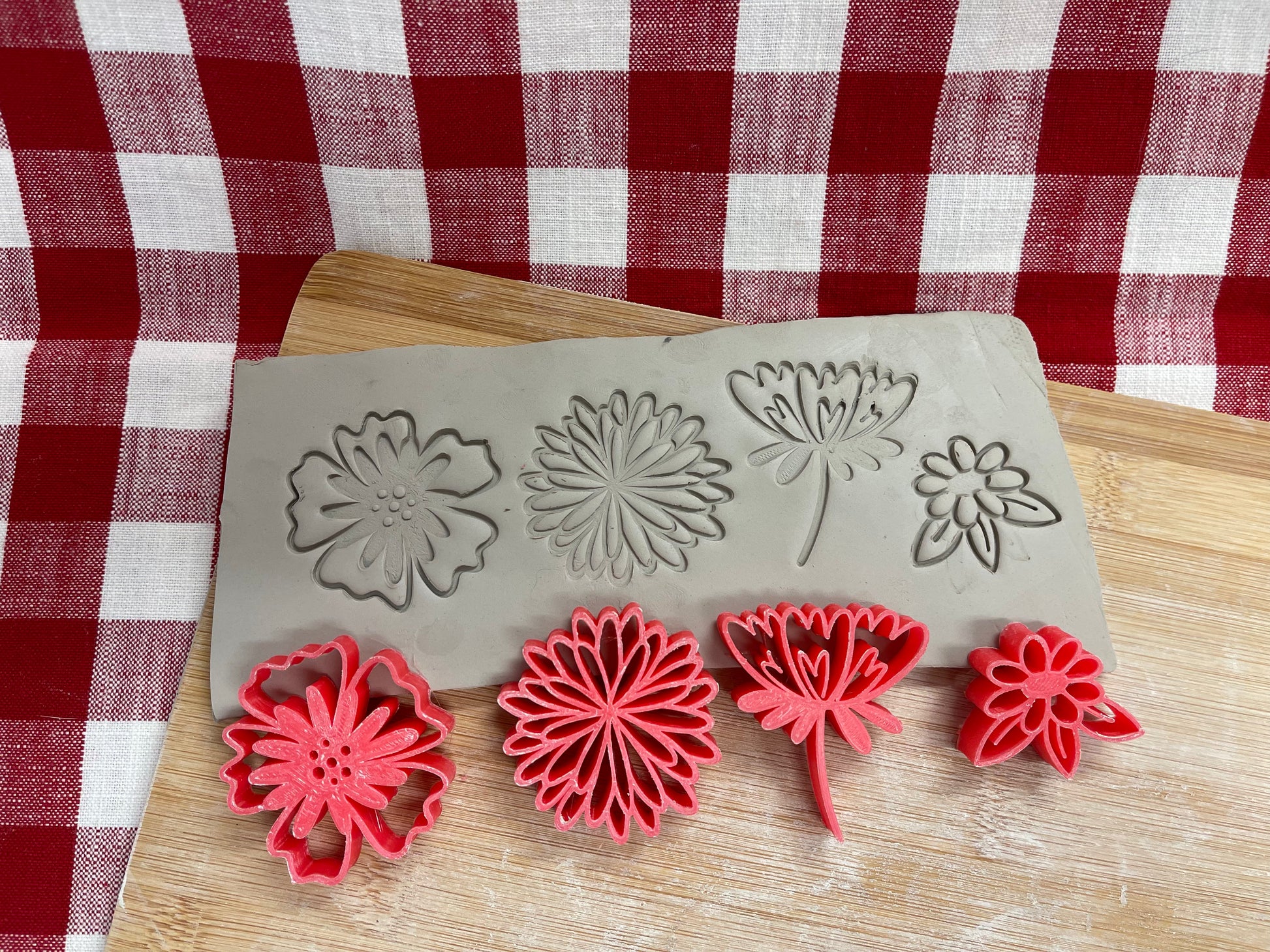 Flower stamp, Set of 4, Day of the Dead Series - plastic 3D printed, pottery tool