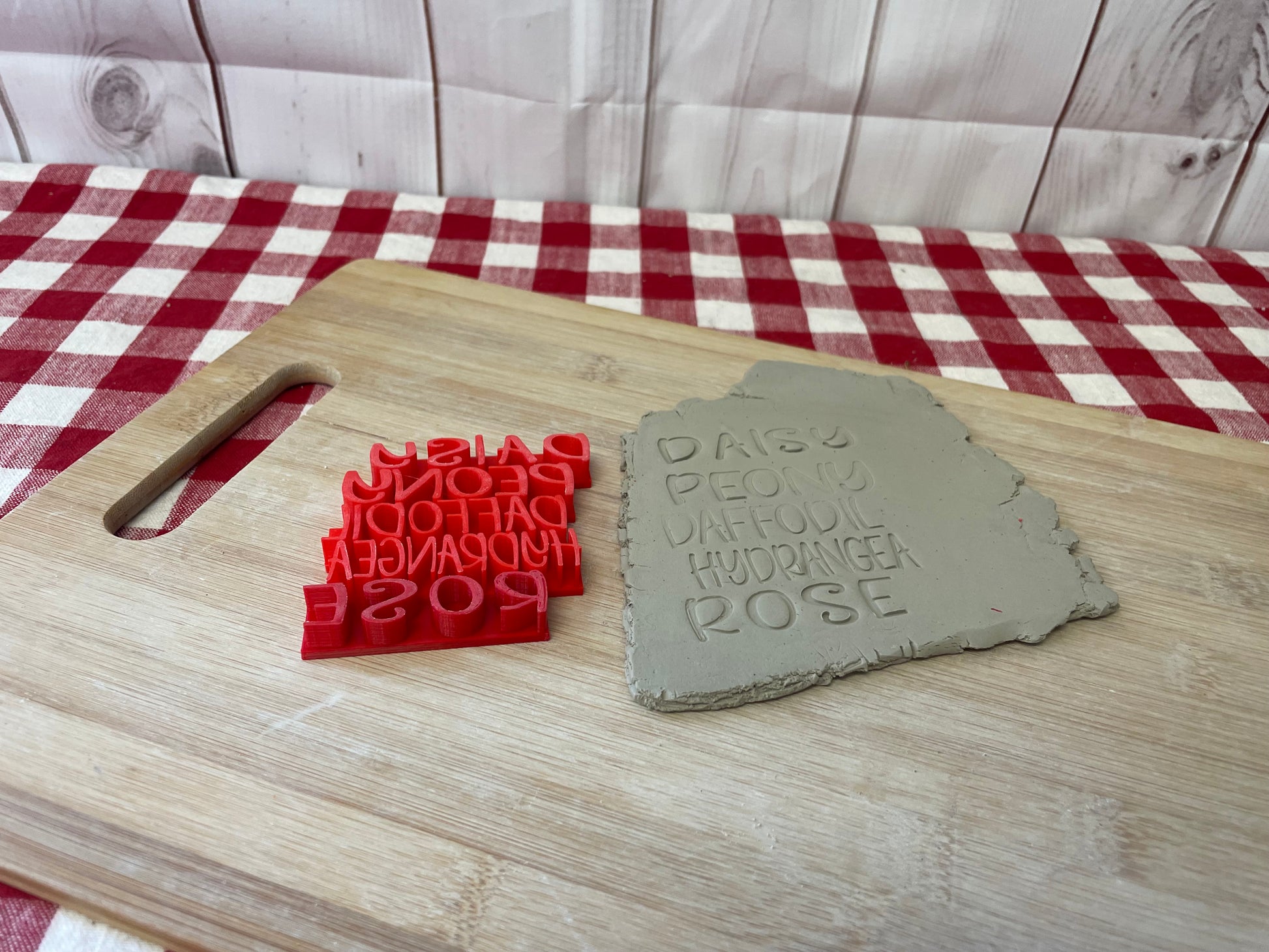 Flower Garden Stake Words Pottery Stamps - Daffodil, Peony, Rose, etc, 3D Printed, each