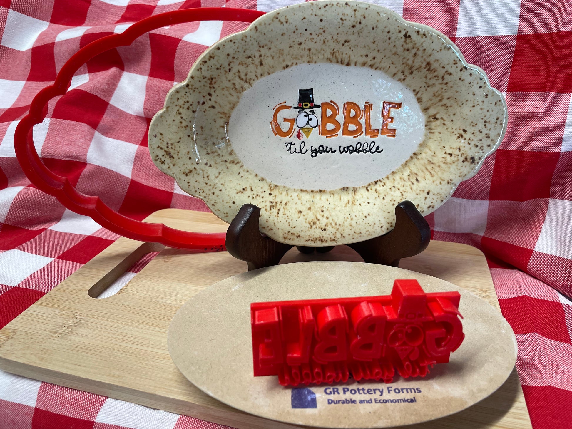 "Gobble 'til You Wobble" word stamp - plastic 3D printed, multiple sizes available