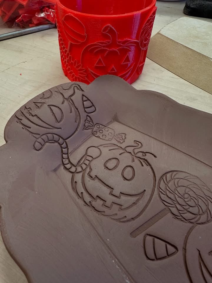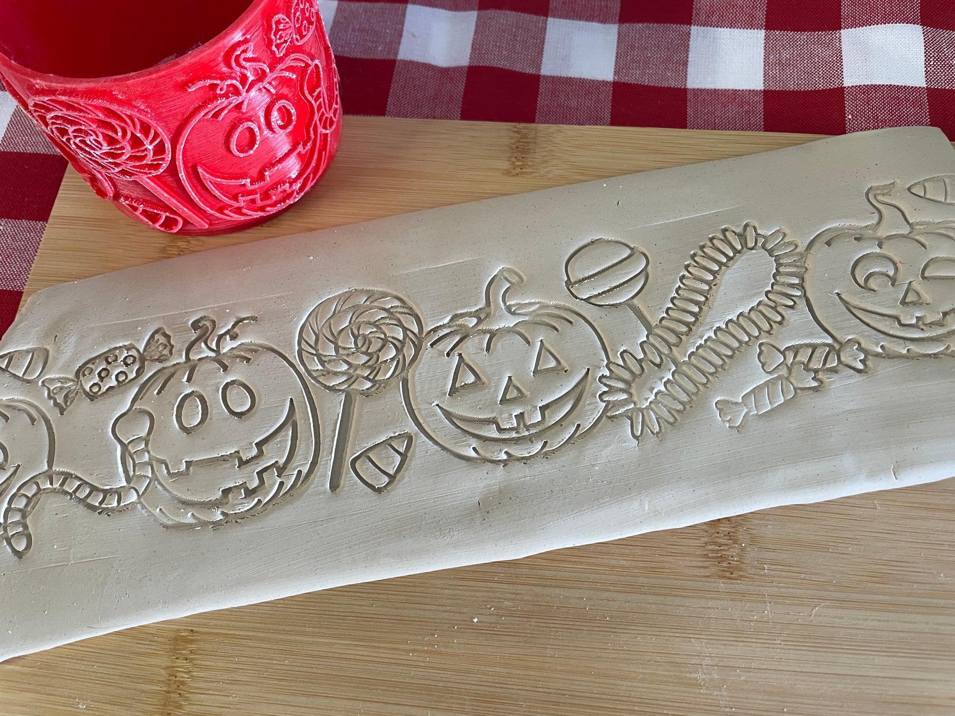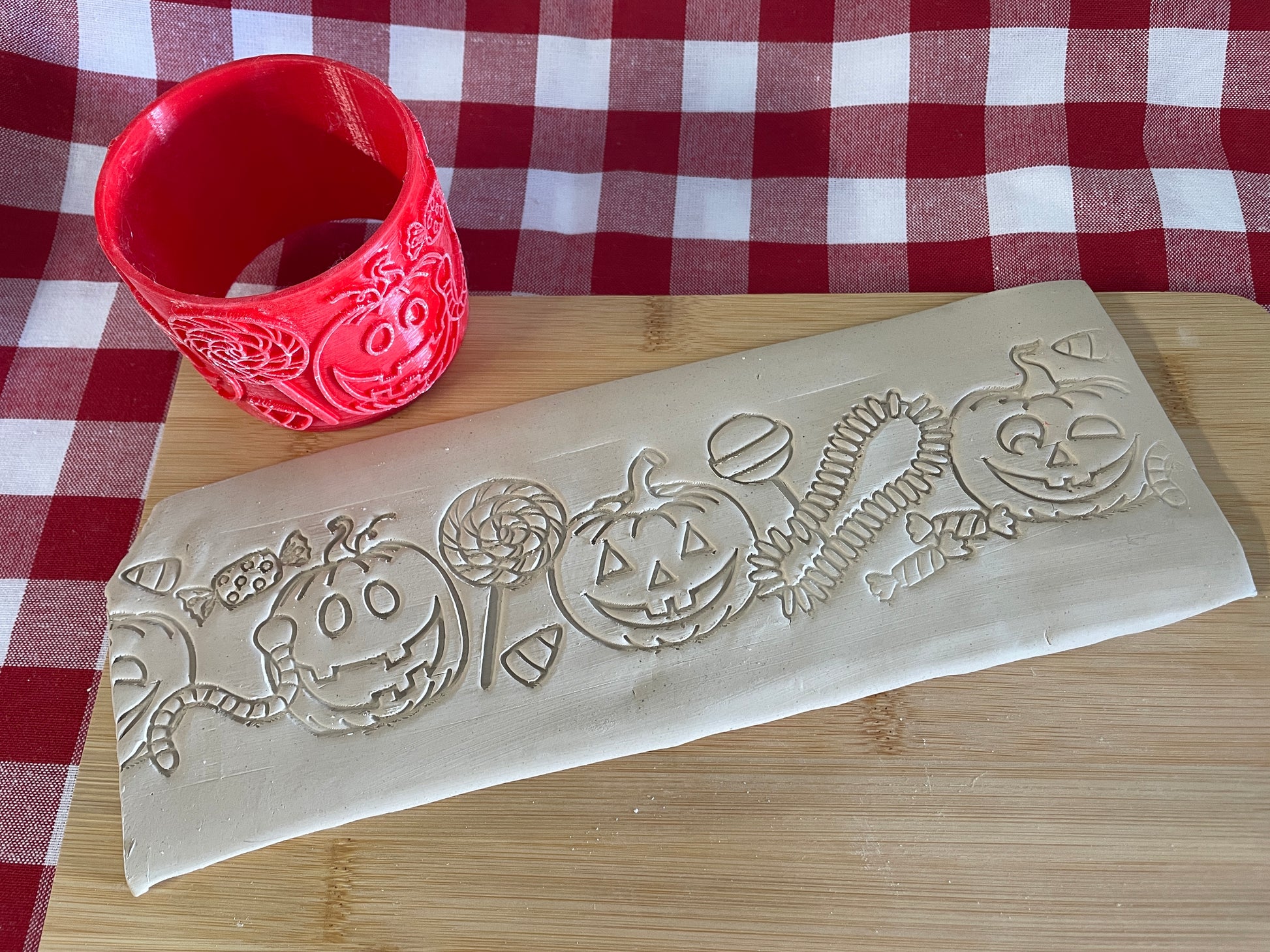 Pumpkins and Halloween Candy Pottery Roller - May 2025 Halloween II Themed Mystery Box - Border Design, Repeating pattern, Plastic 3d printed