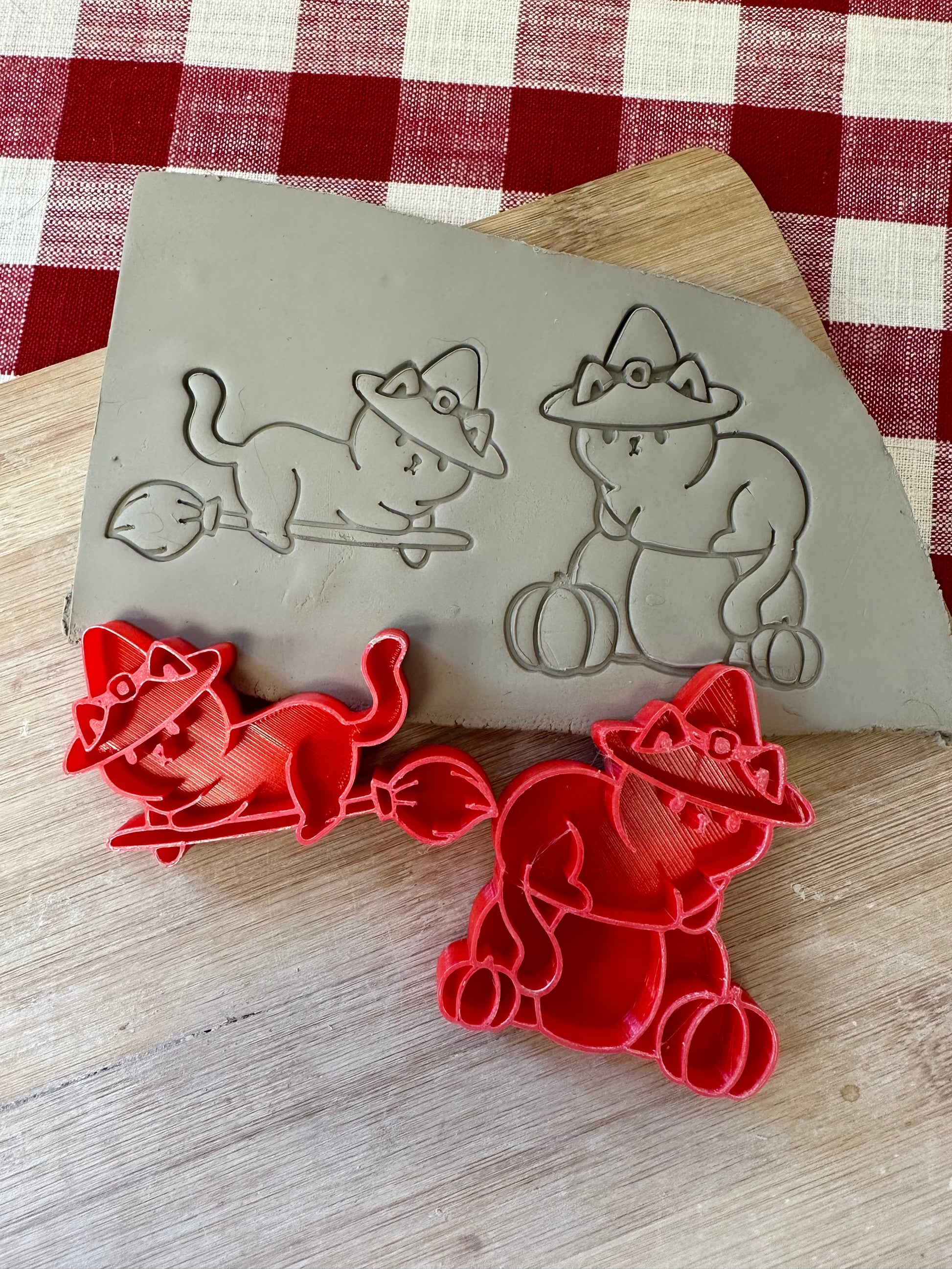 Halloween Witch Cat Pottery Stamp - 3D Printed, each or set