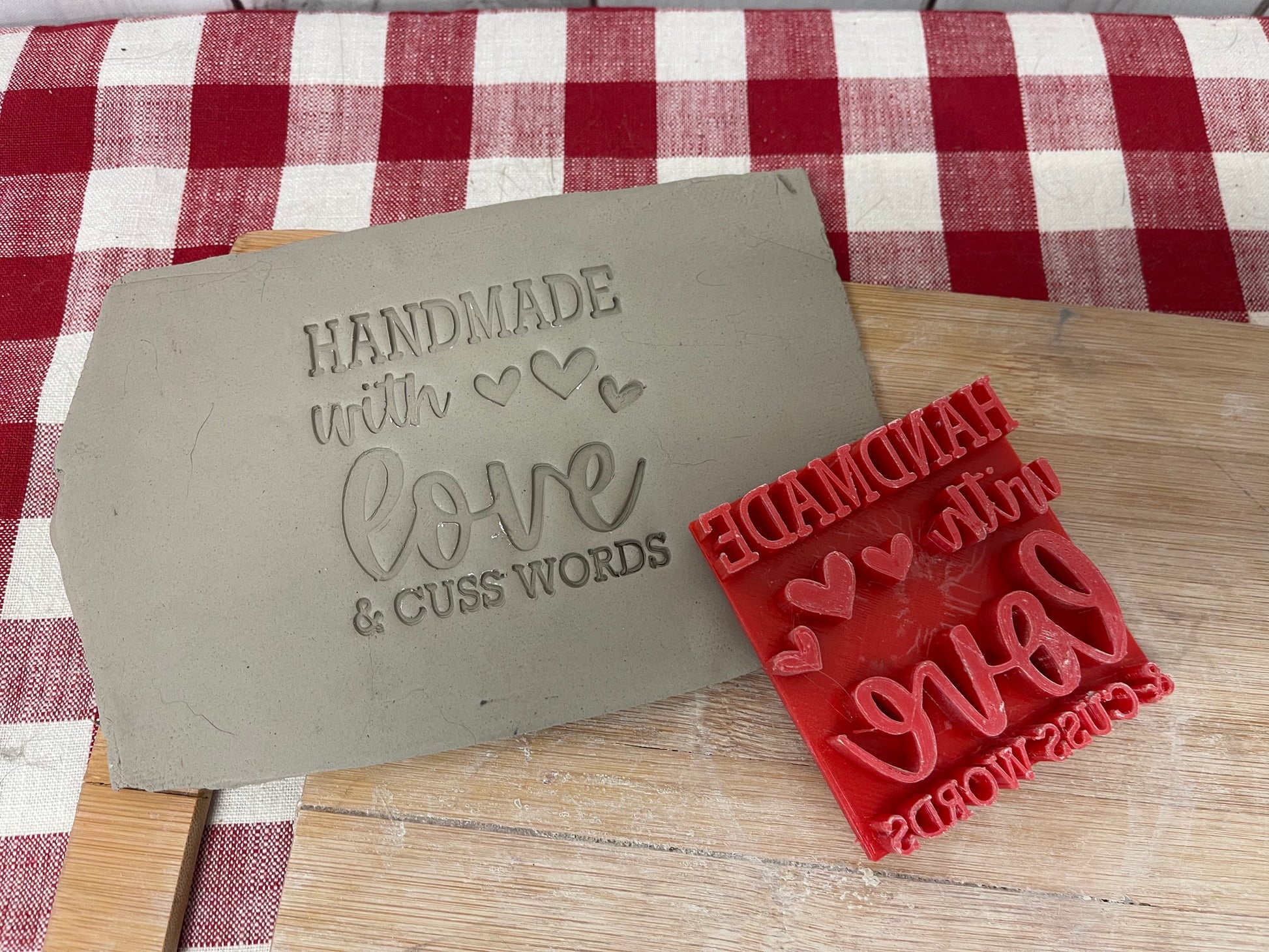 "Handmade with Love & Cuss Words" word stamp - plastic 3D Printed, Multiple Sizes Available