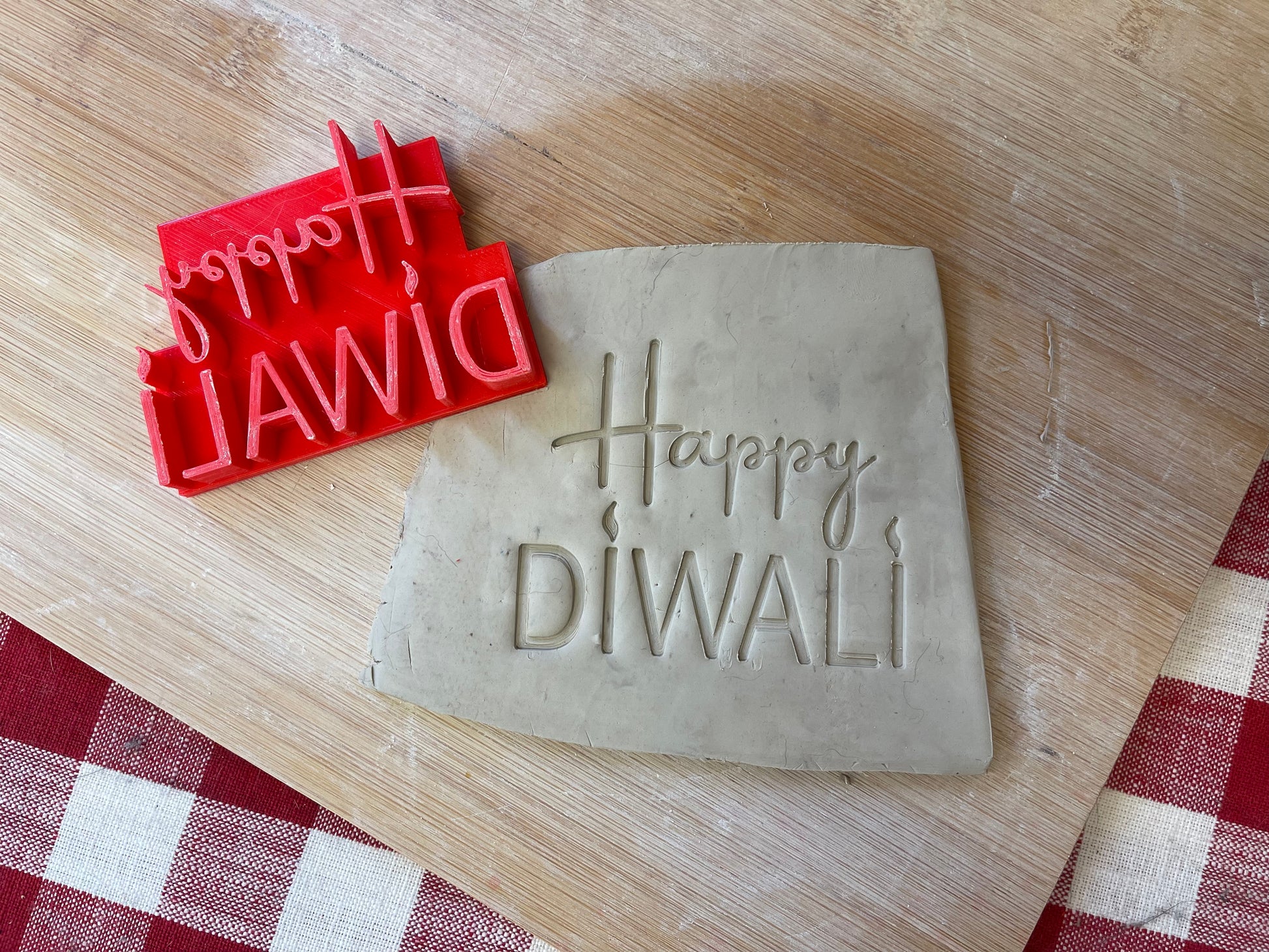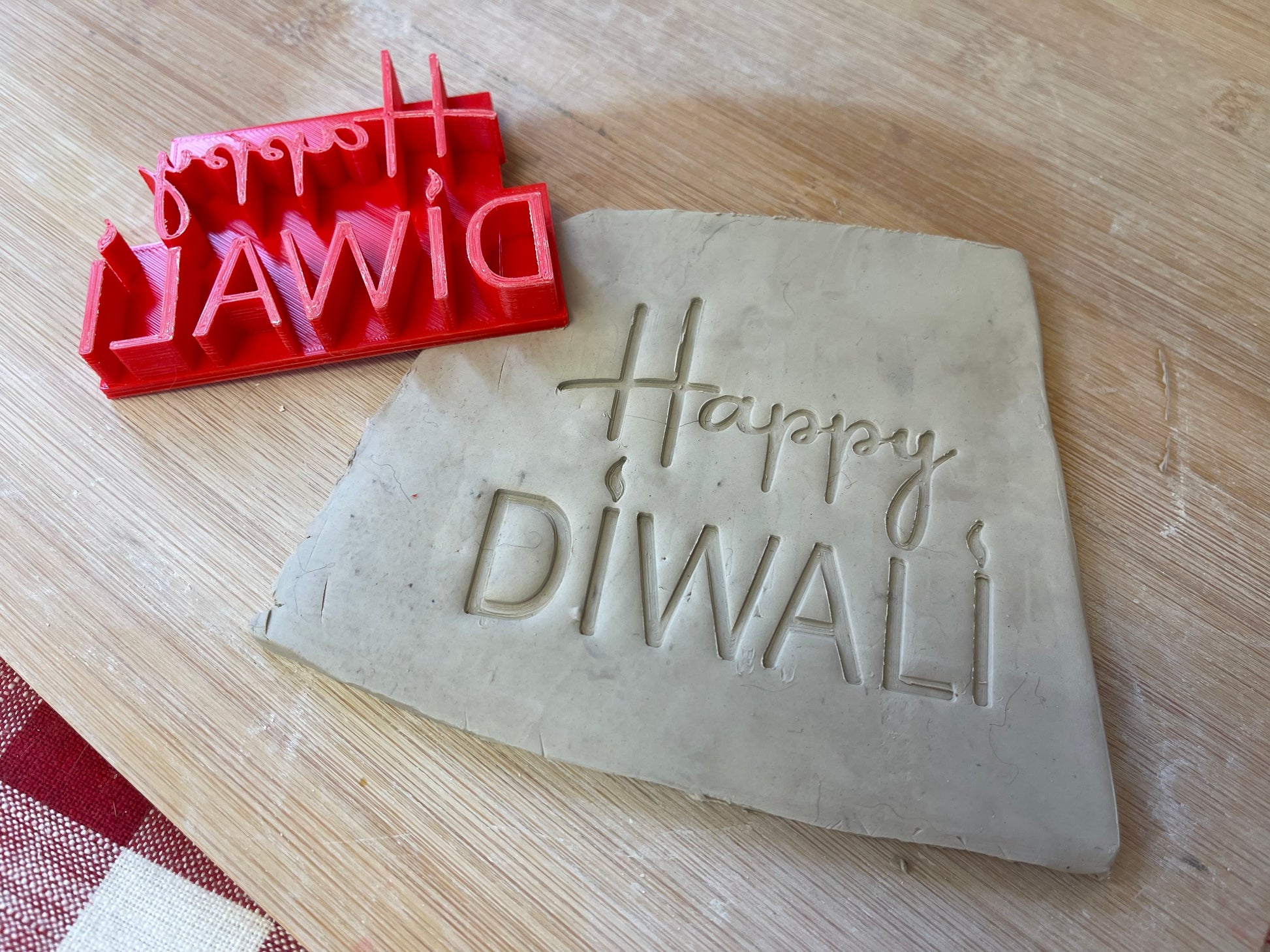 "Happy Diwali" word saying pottery stamp - plastic 3d printed, multiple sizes available