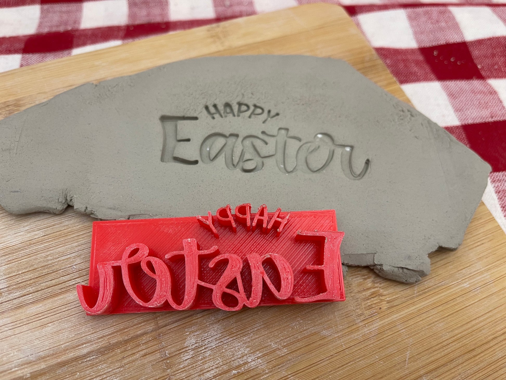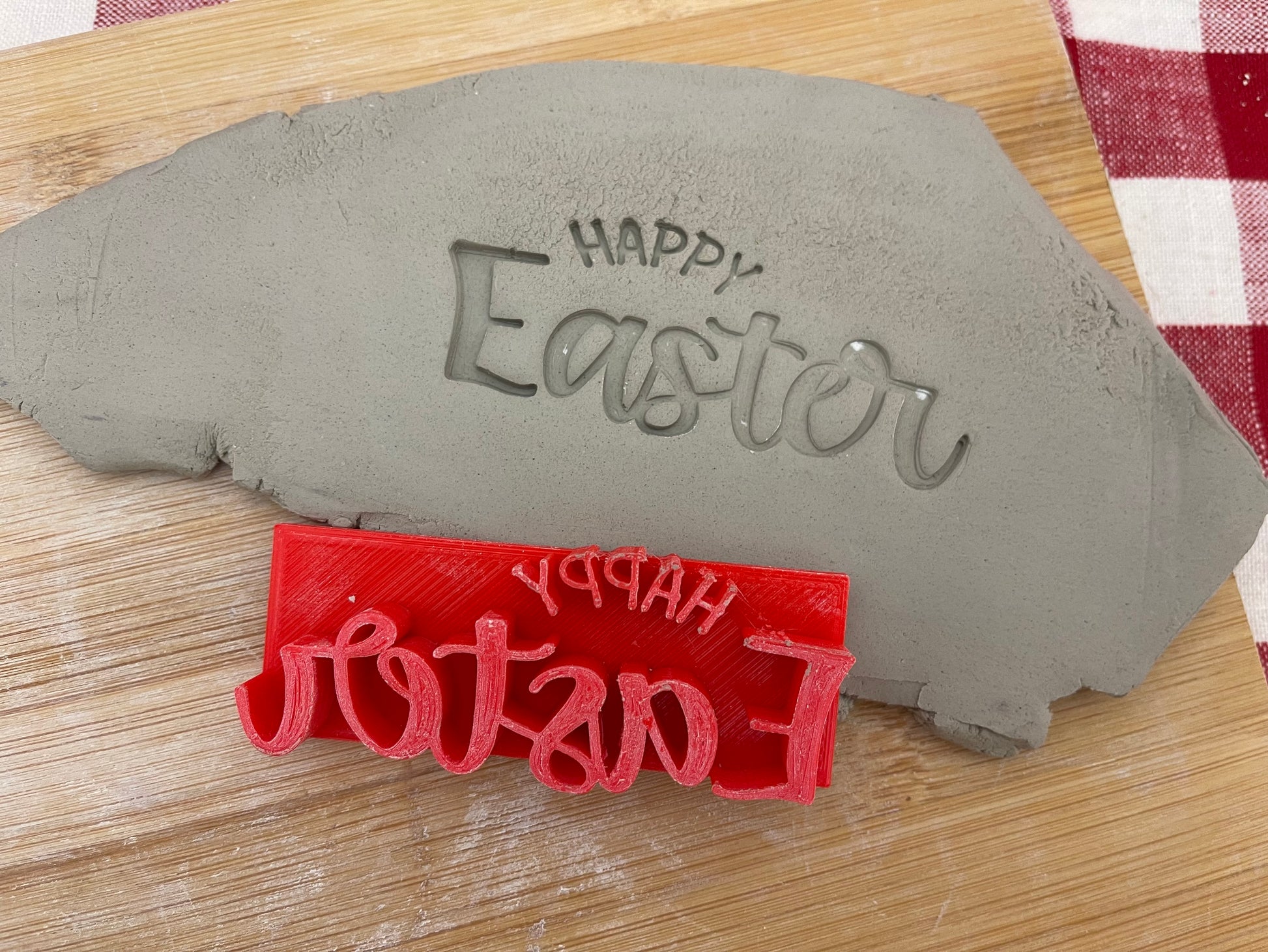 "Happy Easter" word stamp - plastic 3D Printed, Multiple Sizes Available.
