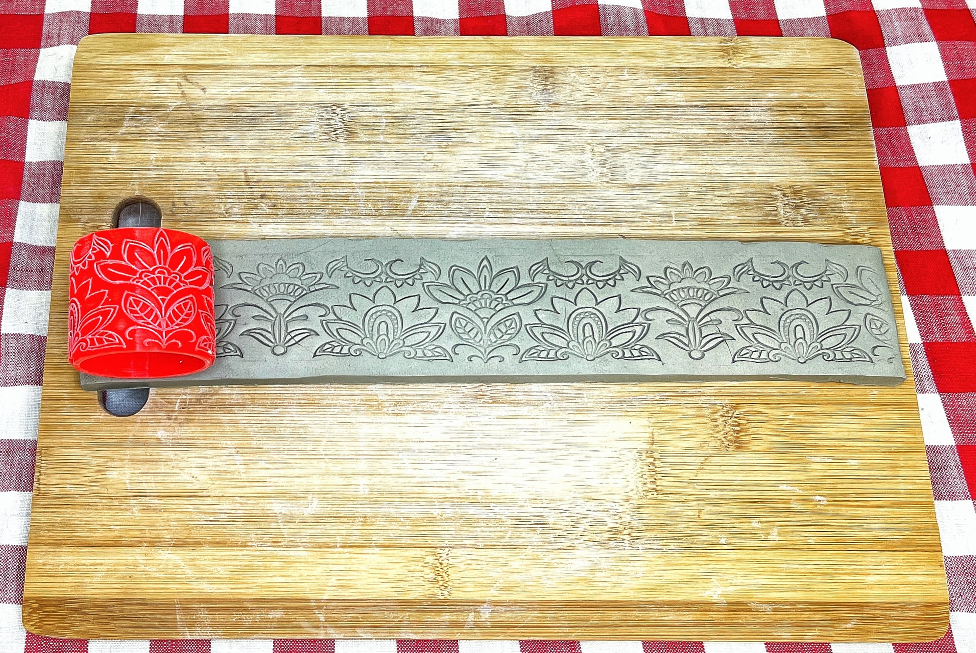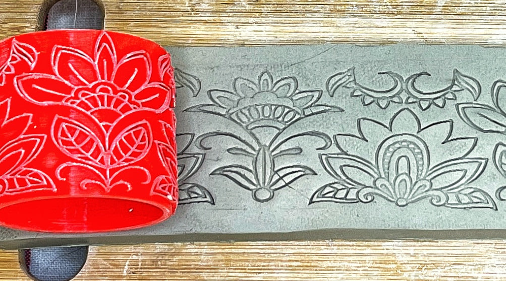 Henna Flowers Pottery Roller - Border Stamp, Repeating pattern, Plastic 3d printed