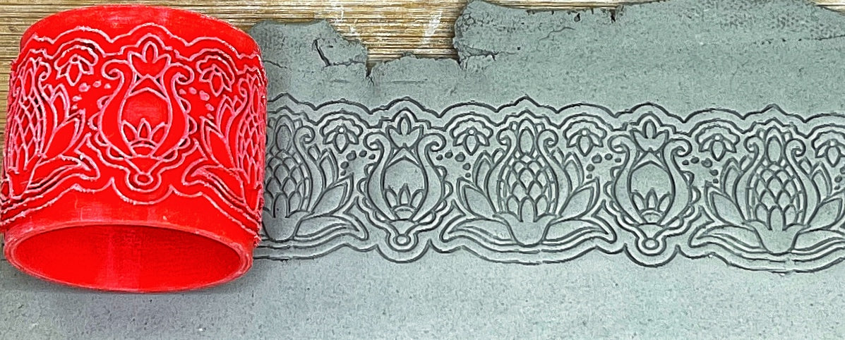 Henna Lace Pottery Roller - Border Stamp, Repeating pattern, Plastic 3d printed
