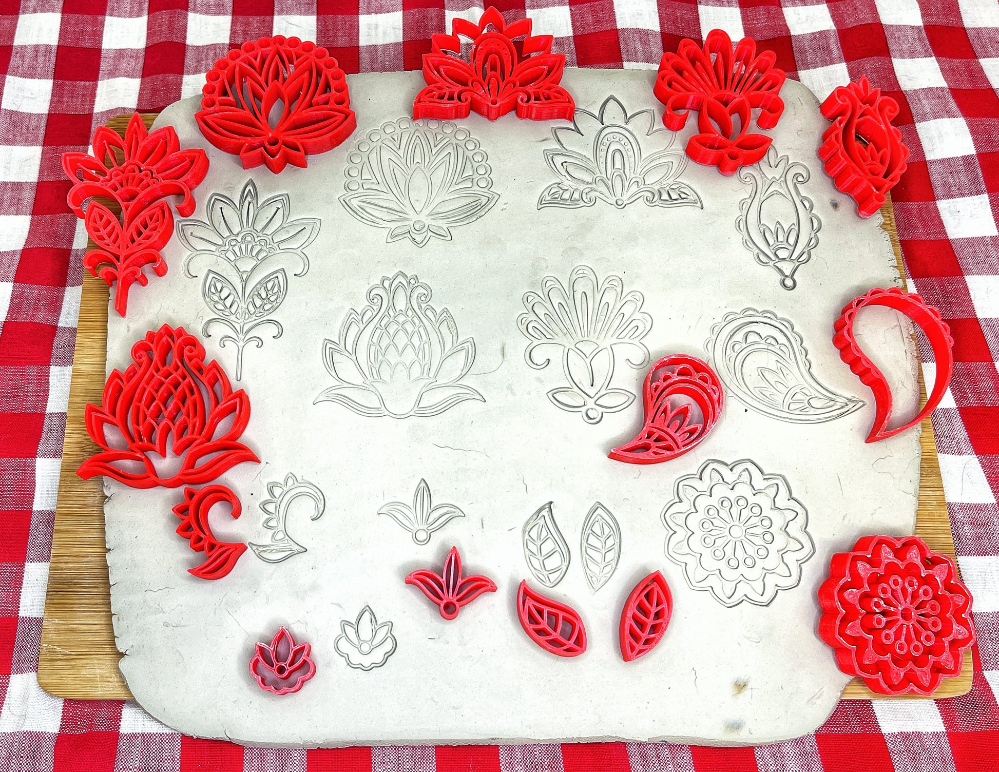 Henna Leaf Design Pottery Stamp, Set of 2 leaves - plastic 3d printed, multiple sizes available