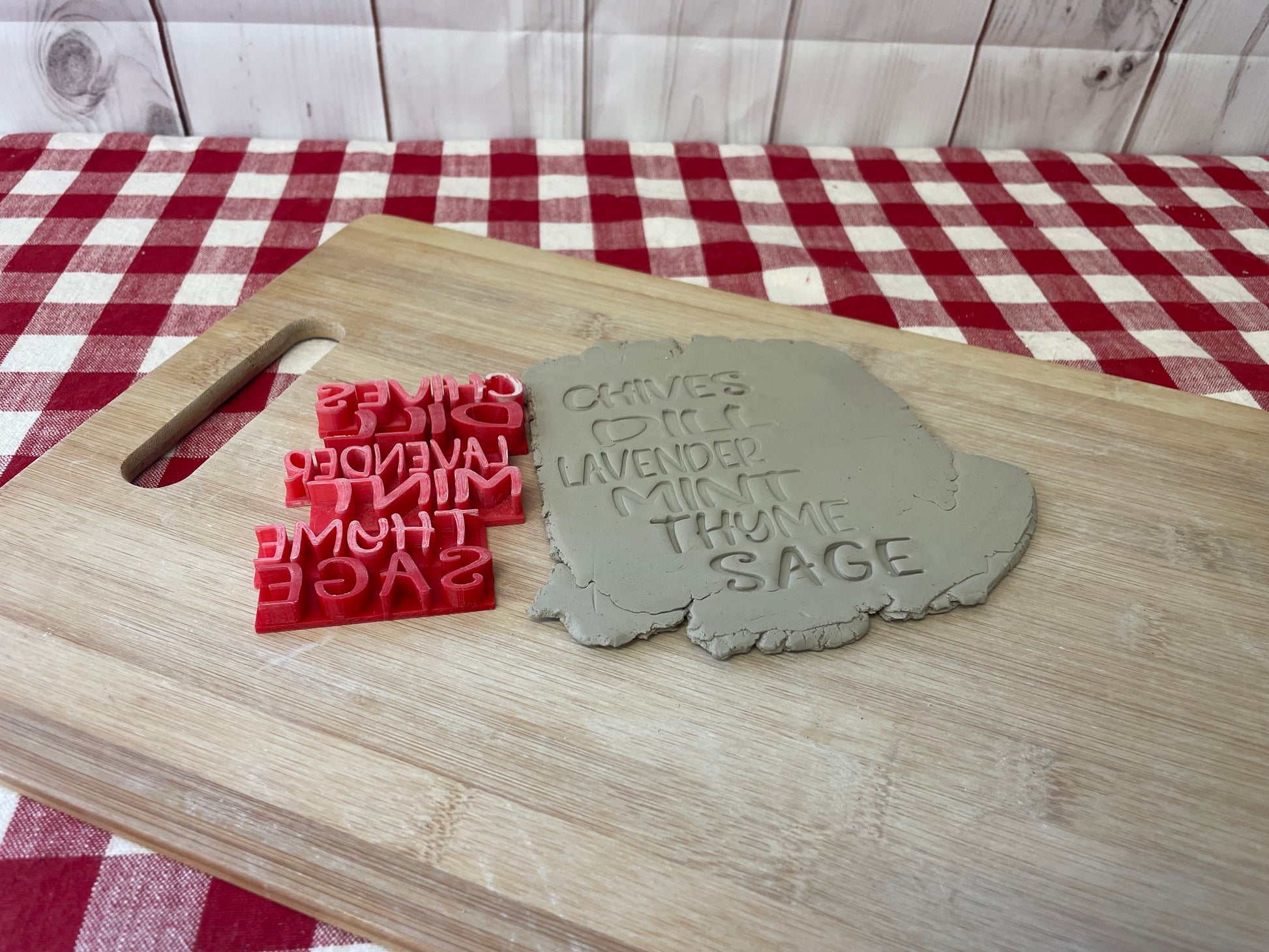 Herb Garden Stake Words Pottery Stamps - Basil, Dill, Parsley, etc, 3D Printed, each