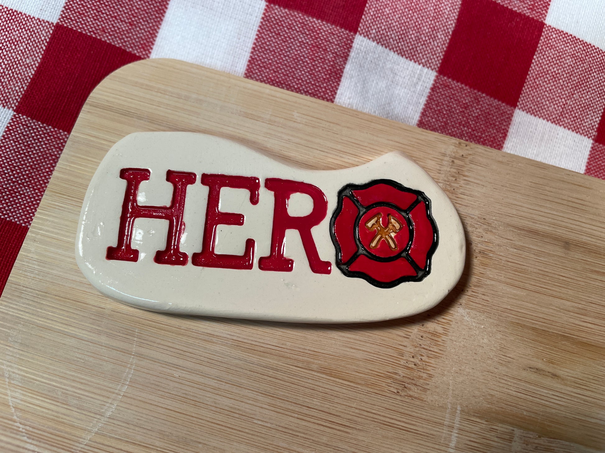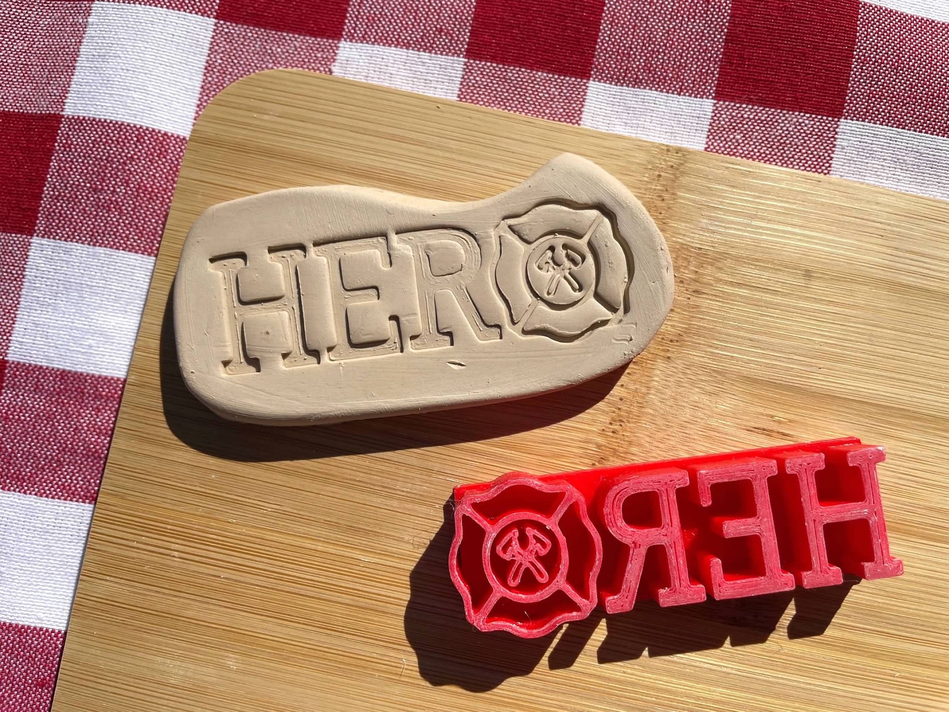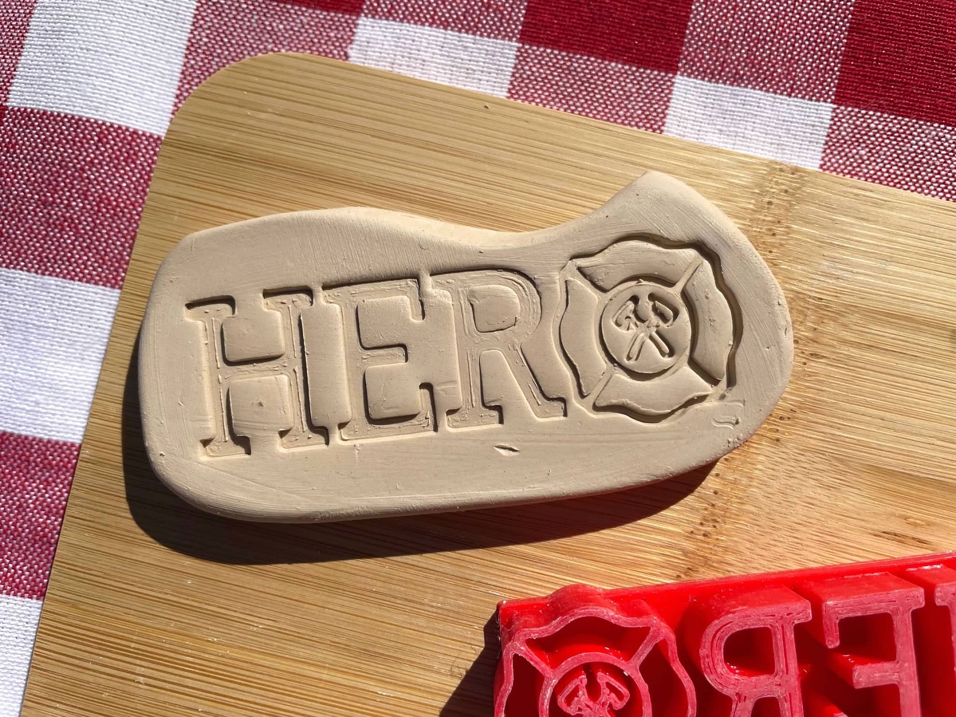 "Hero" - Firefighter Pottery Stamp - word stamp First Responders themed November 2024 Mystery Box, multiple sizes available