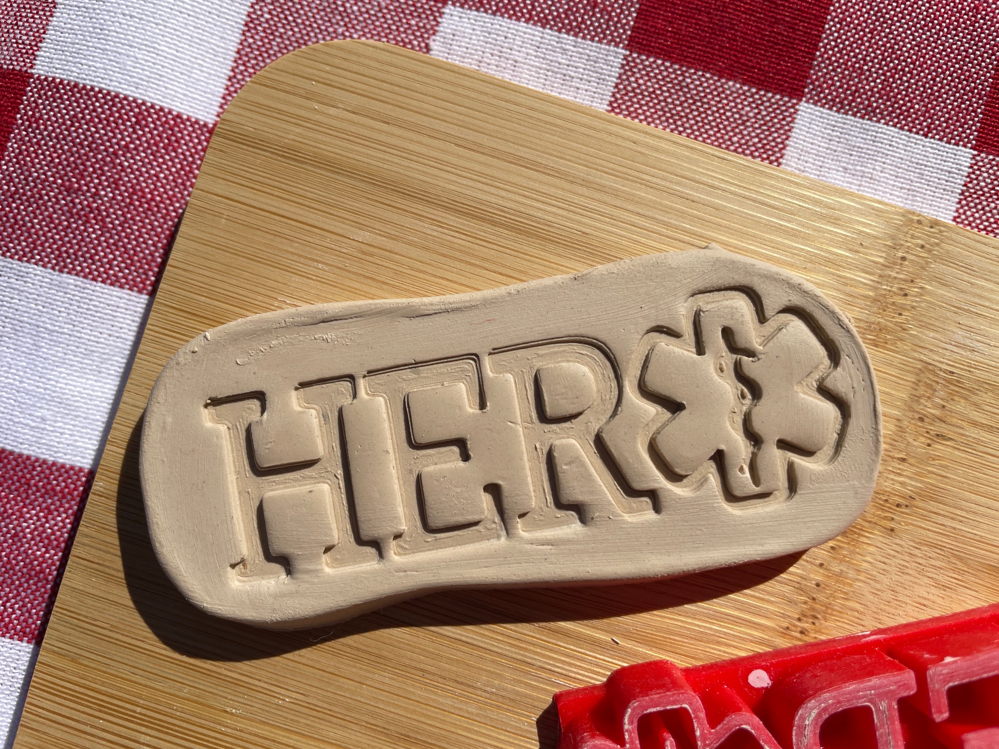 "Hero" - Medic, EMT Pottery Stamp - word stamp First Responders themed November 2024 Mystery Box, multiple sizes available