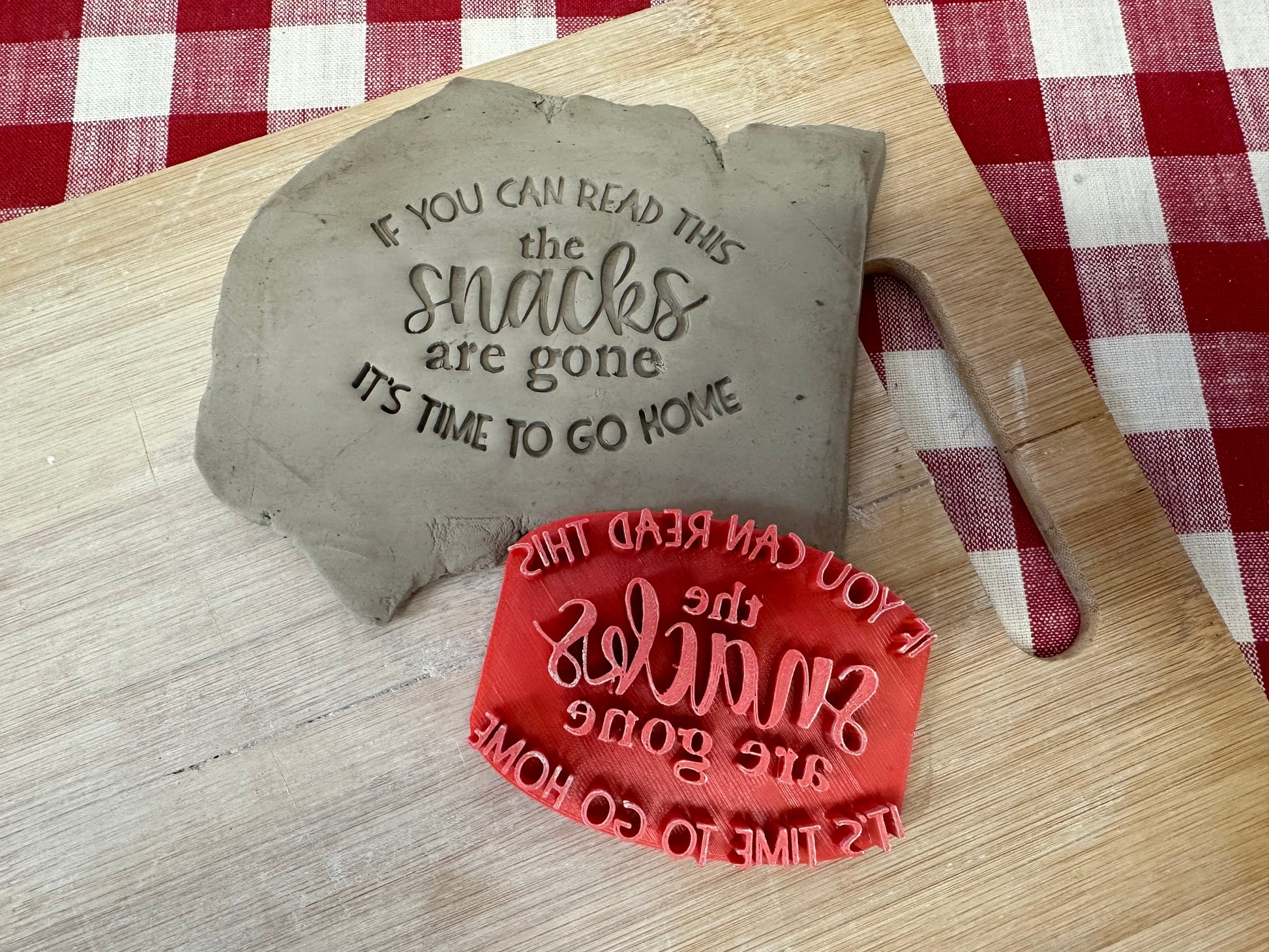 "If You're Reading This the Snacks are Gone It's Time to go Home" word pottery stamp - plastic 3D printed, multiple sizes