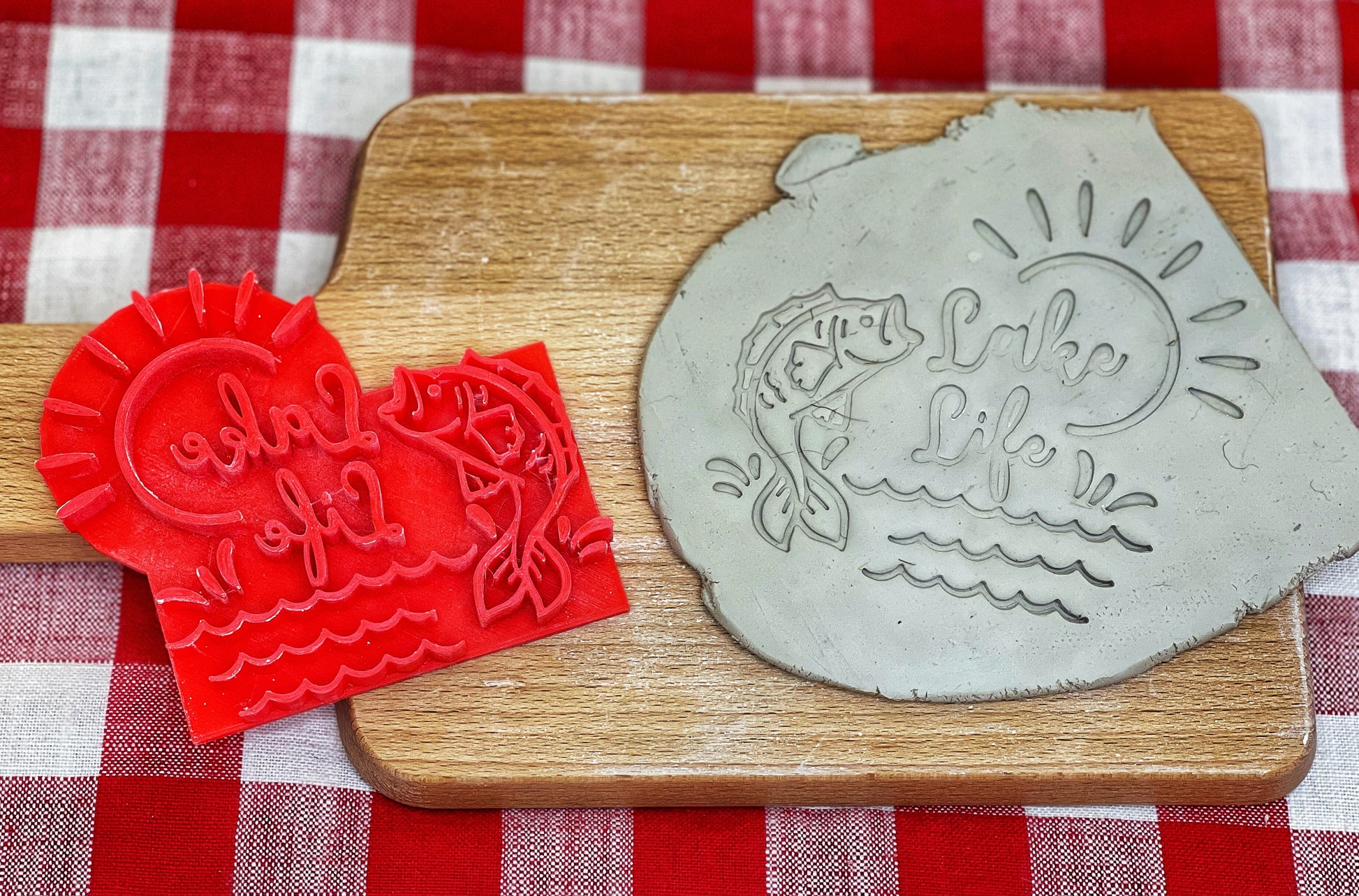 Lake Life pottery stamp with fish. Measurements are approximate and taken at the widest location. Choose size in drop down menu.