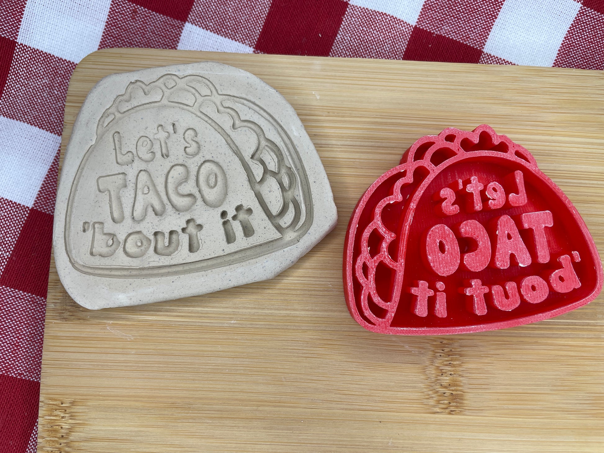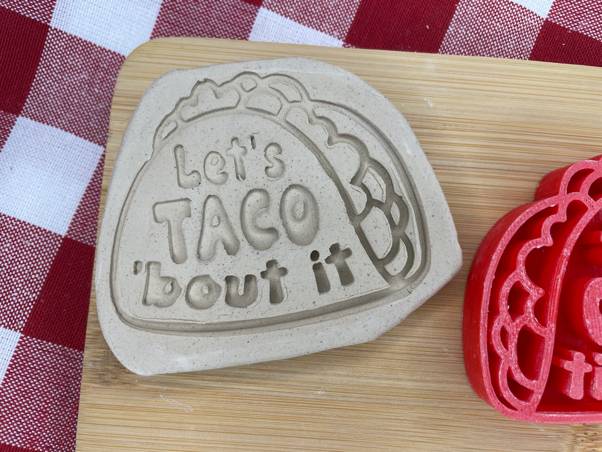 "Let's TACO 'bout it" Pottery Word Stamp - Fiesta Party themed April 2025 Mystery Box, multiple sizes available