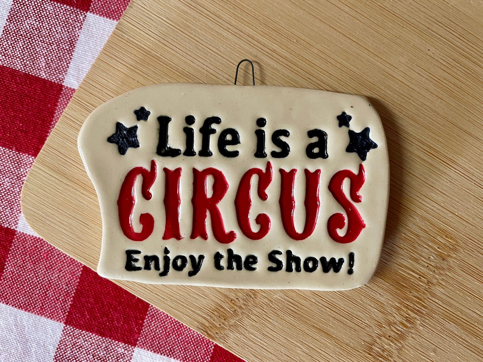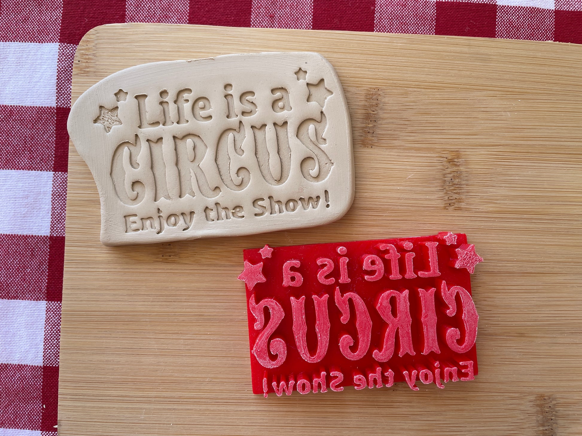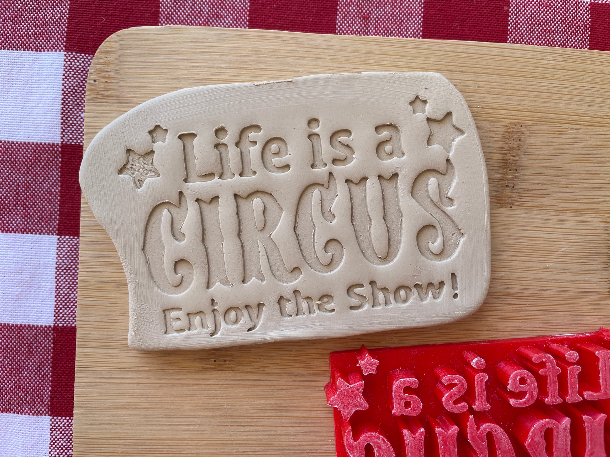 "Life is a CIRCUS Enjoy the Show!" - Pottery Word Stamp - June 2025 - Circus Themed Mystery Box, multiple sizes available