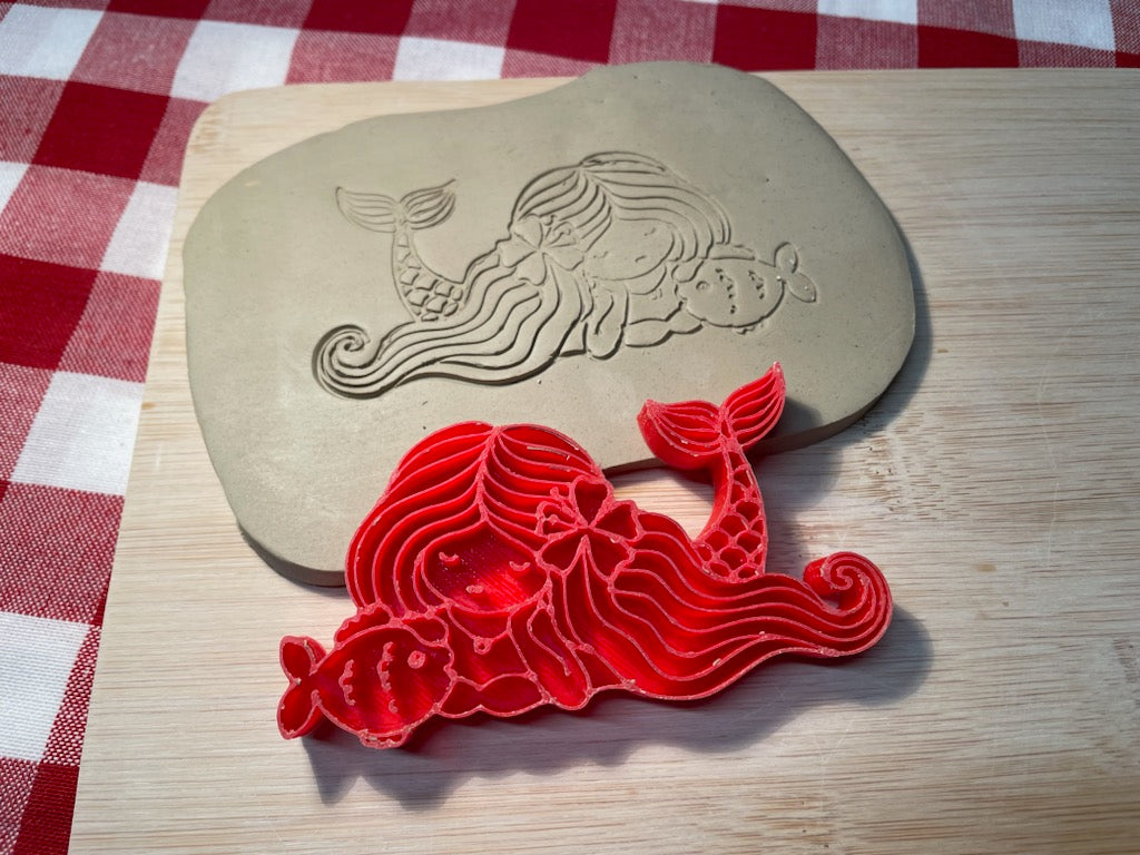 Mermaid pottery stamp, from the May 2024 Girls mystery box, 3d printed, multiple sizes available