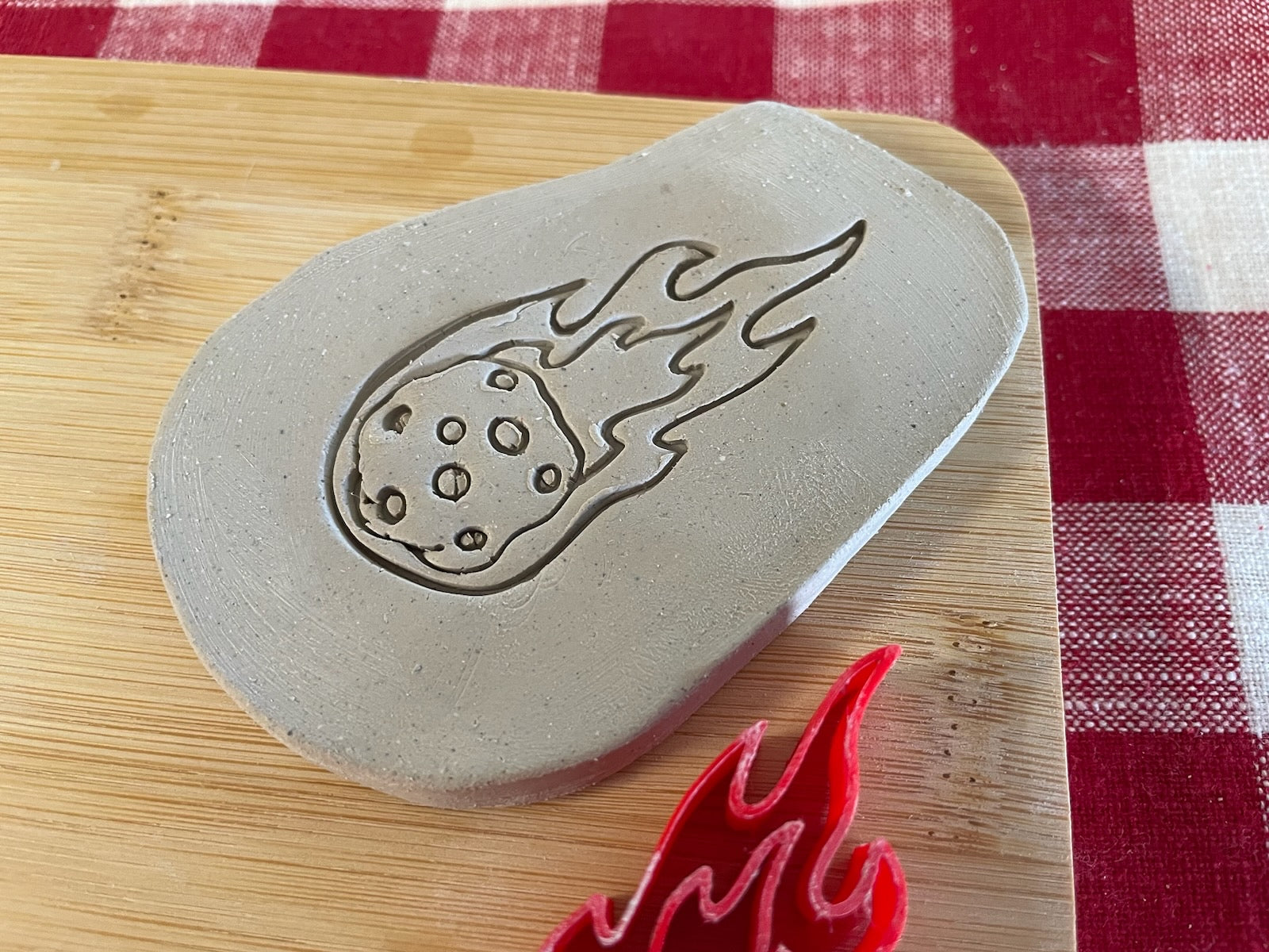 Meteor design from the October 2023 mystery box, space themed. 2.5" size was in the deluxe box.