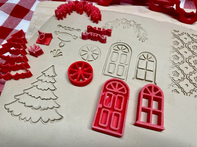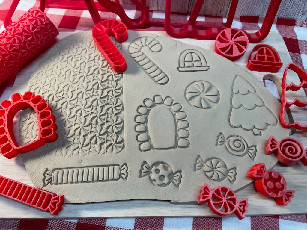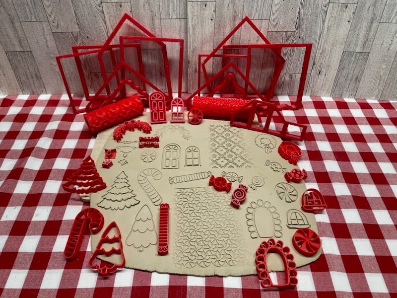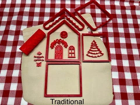These are monthly mystery box for Christmas in July 2024. This month's theme is 3d houses. There are 2 separate boxes to choose from a Gingerbread style house and a traditional style house. Both boxes have all the cutters and stamps needed to make and decorate a house. Both boxes contain a different texture roller. Both boxes are completely different but pieces between the 2 styles can be mixed and matched. There is also an option to purchase a chimney cutter which works with both styles of houses. If you purchase both kits, you will receive the chimney cutter and a bonus stamp for free.