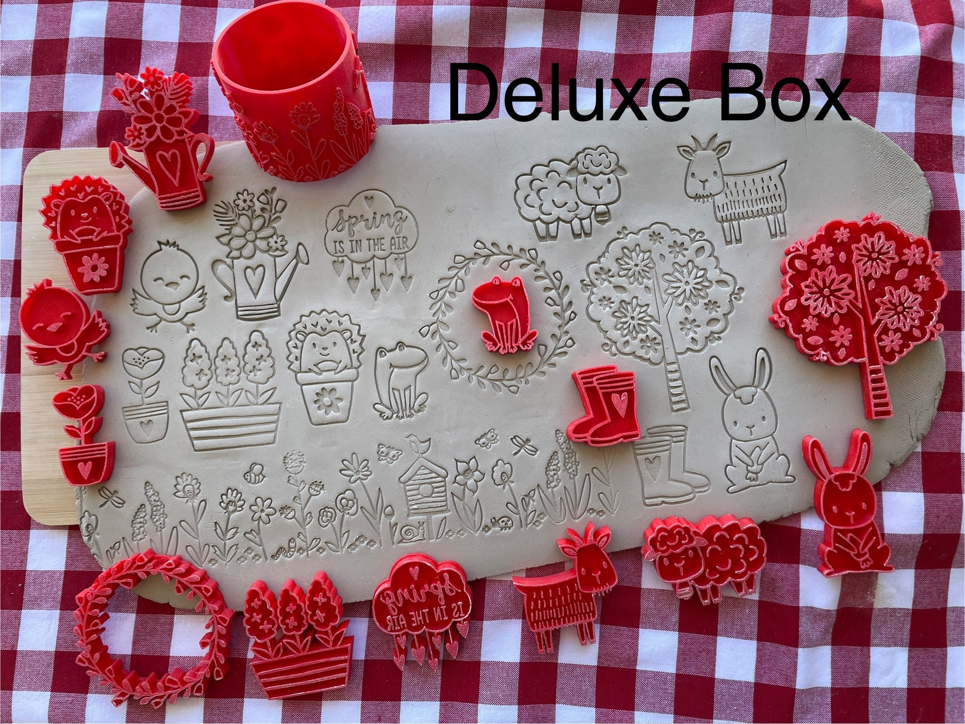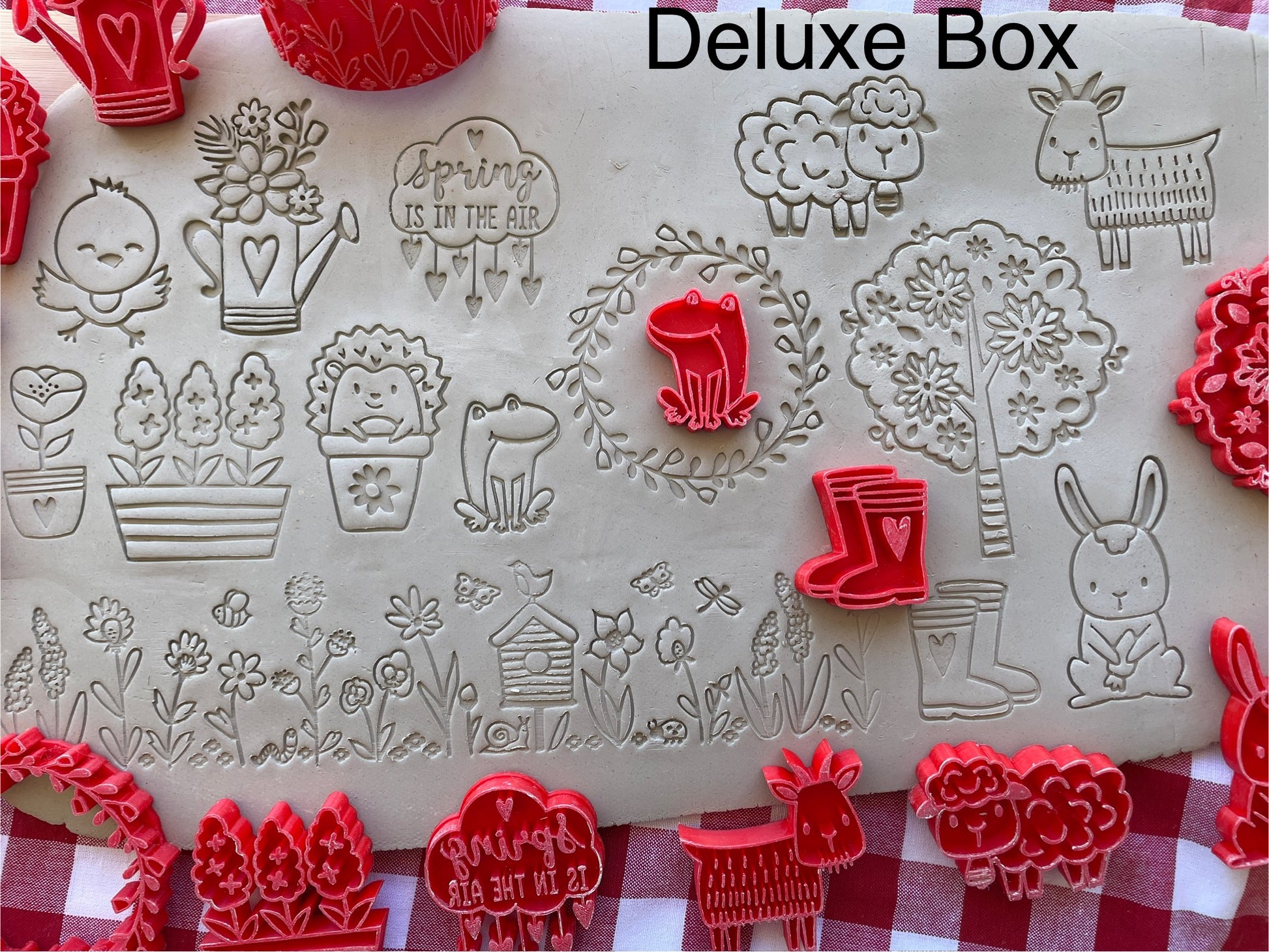 This is a monthly mystery box for February 2025. Boxes will ship out as soon as they become ready. Current boxes are all new, never released items. See my Instagram or Facebook page for sneak peeks. This month's box is Spring themed. There are 7 stamps in the basic box and 1 3" roller and a total of 13 stamps in the deluxe box. The Deluxe box contains everything in the basic box.