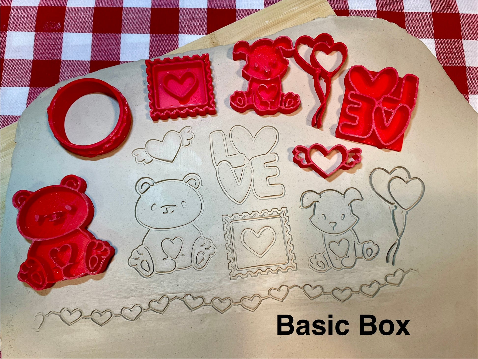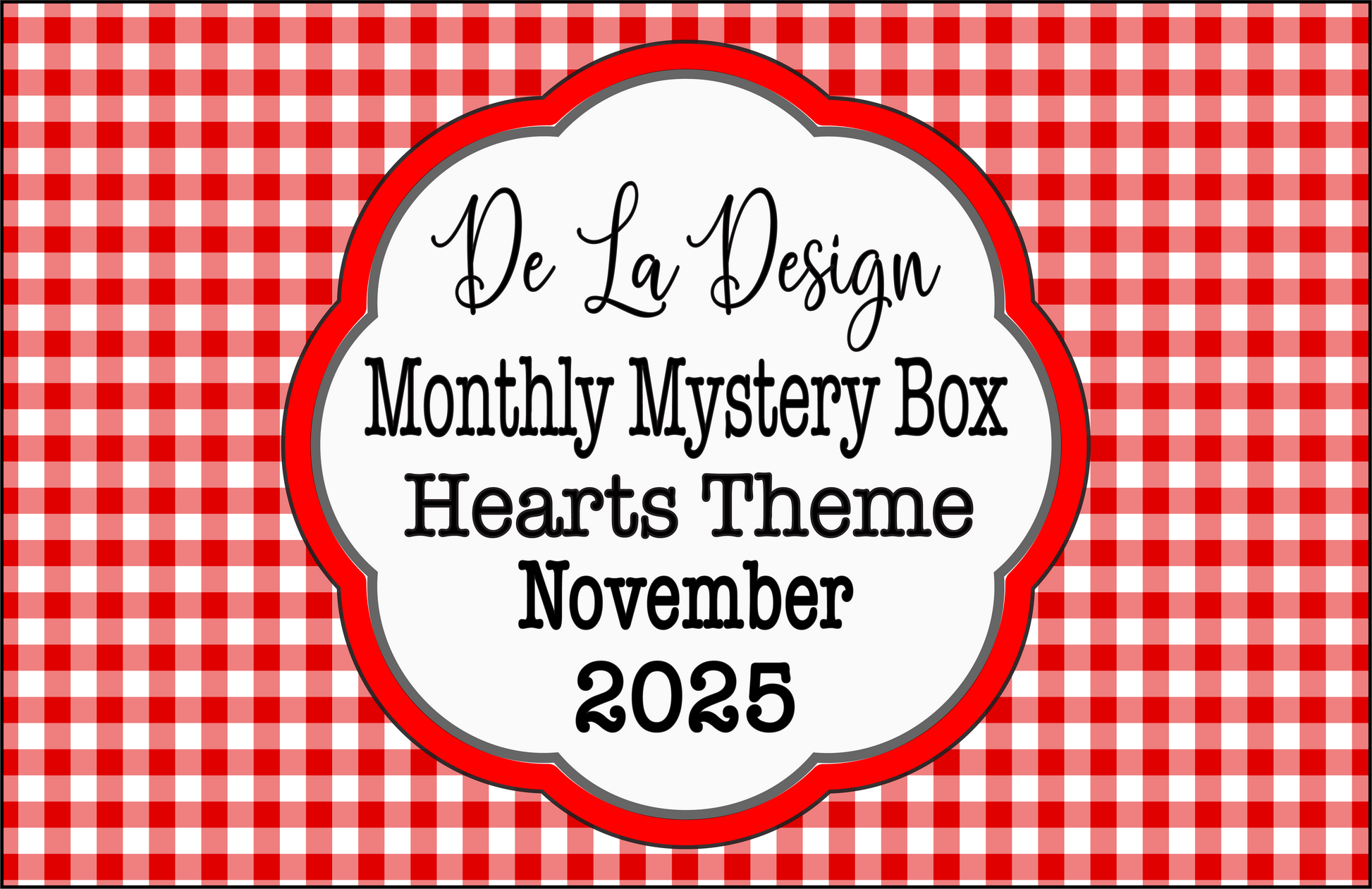 This is a monthly mystery box for November 2025. Boxes will ship out as soon as they become ready if no additional items are ordered. Current boxes are all new, never released items. See my Instagram or Facebook page for sneak peeks. This month's box is November - Hearts themed. There are 6 stamps and a mini roller in the Basic Box. There are 13 stamps, a mini roller and a 3" roller in the Deluxe Box. The Deluxe Box contains everything in the basic box.