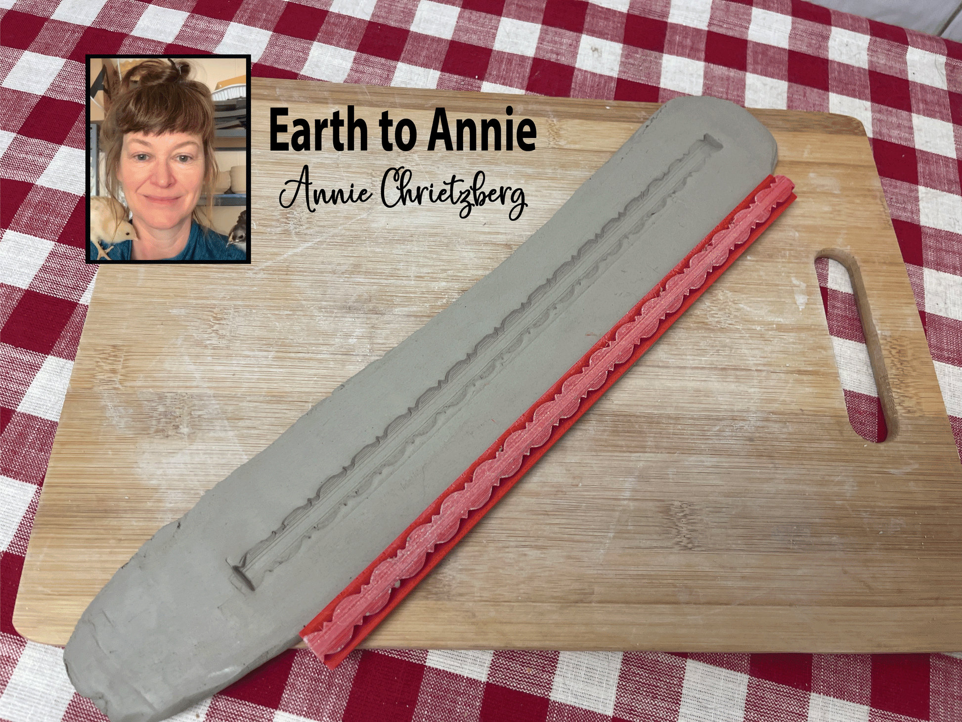 Earth to Annie motif stick is a textured trim molding to roll in to clay for a great border design. Motif stick is 12" long and border design is 15 mm wide