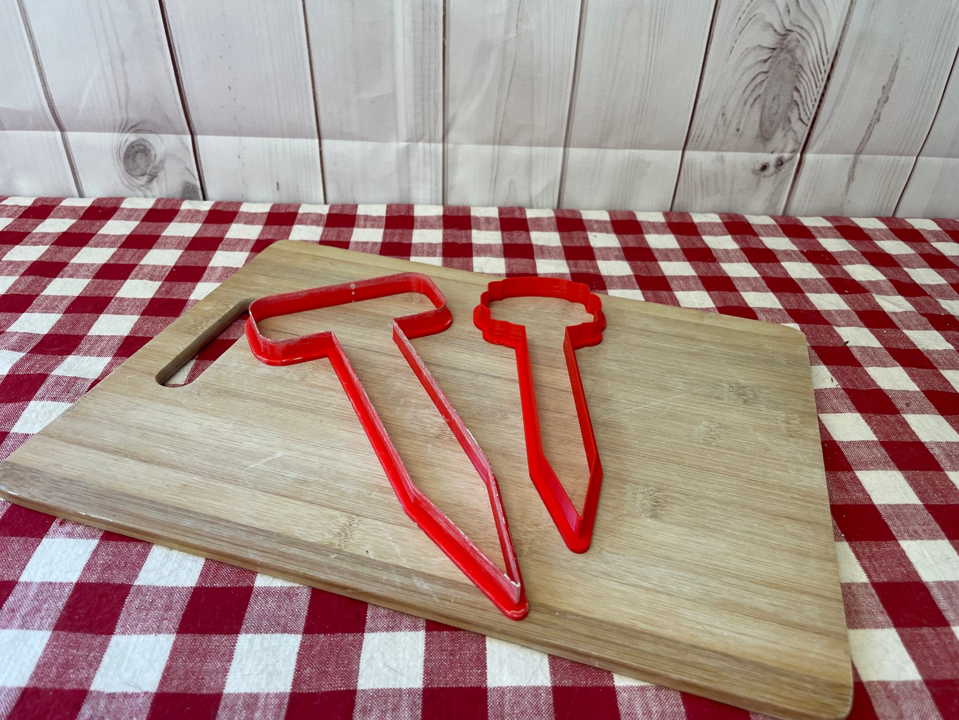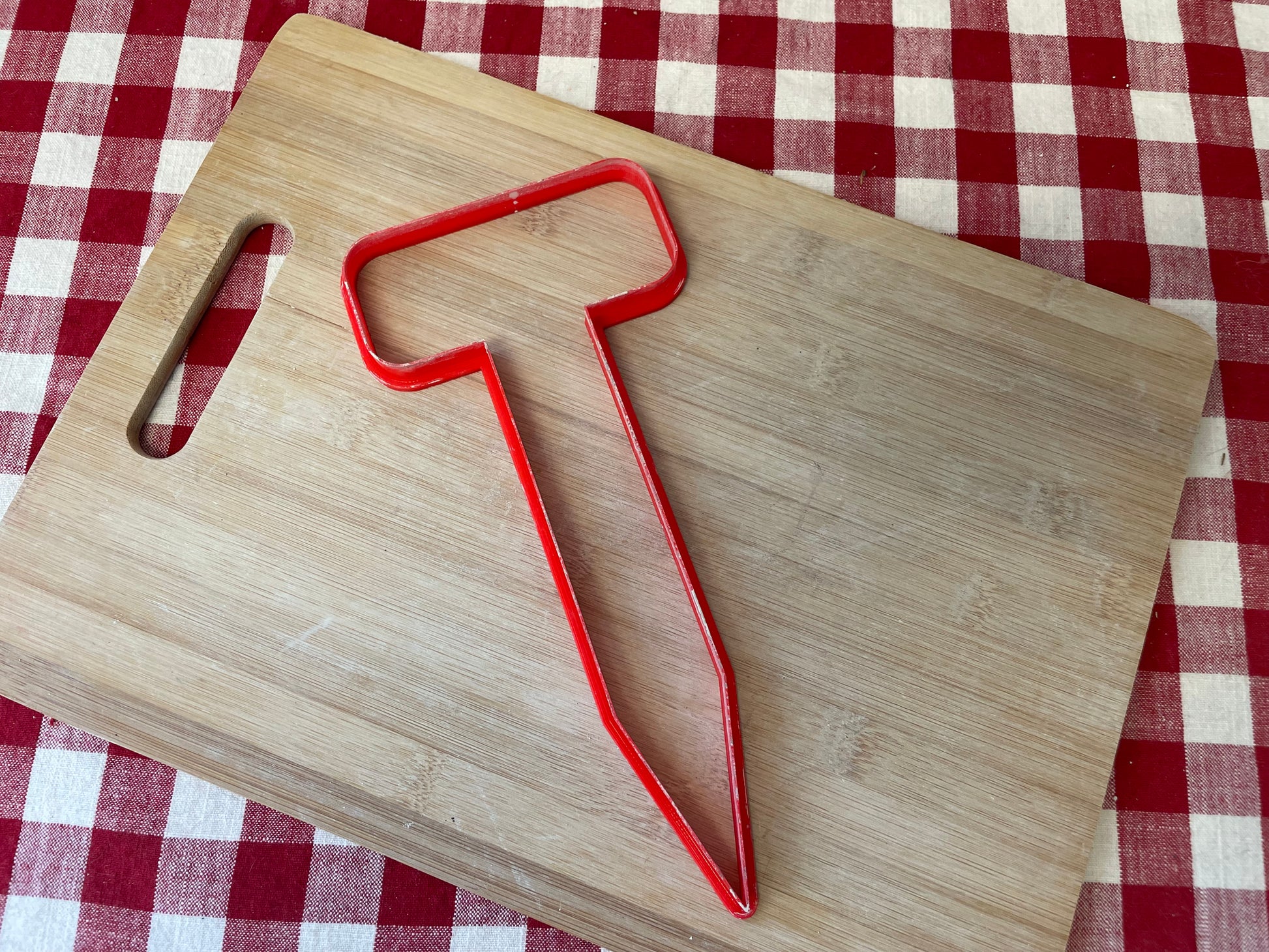 Cookie cutter is 3D printed using PETG plastic filament. Keeps its shape as opposed to metal cookie cutters. Has a wide handle for strength and durability.